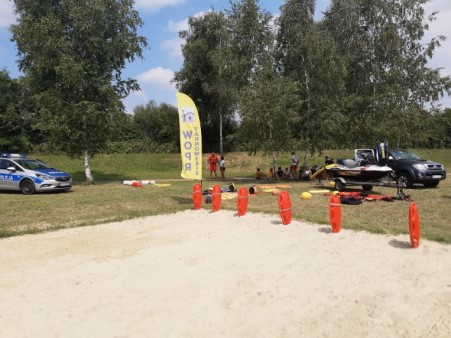 Osoby zgromadzone na terenie kąpieliska miały również możliwość samodzielniego udzielania pomocy poprzez wykorzystanie sprzętu ratowniczego oraz spróbowanie swoich sił w udzielaniu pierwszej pomocy na profesjonalnych fantomach.