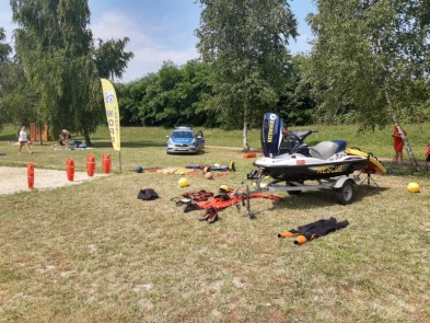 Ratownicy WOPR zabrali również ze sobą sprzęt, którego używają podczas pracy na wodzie. Ludzie licznie tam wypoczywający z dużym zaciekawieniem wzięli udział w takiej formie szkolenia. Pierwsza część została przedstawiona przez kierownika „Rescue Team Bochnia”. Omówiono i pokazano techniki holowania topiących się osób oraz sposób ich ratowania w przypadku m. in. wywrócenia się łódki. Przebywające na terenie kąpieliska osoby miały możliwość zapoznania się ze sprzętem używanym podczas udzielania pomocy na zbiornikach wodnych oraz sprzętem ratowniczym.