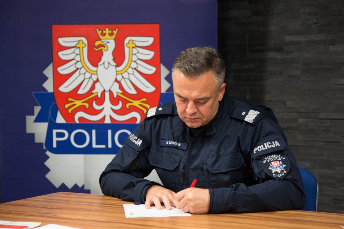 Dlatego też Komendant Wojewódzki Policji w Krakowie, nadinsp. Michał Ledzion, mając na uwadze szczytny cel ratowania życia dziecka, zainicjował przeprowadzenie w komendzie akcji pomocowej i sam dołączył do bazy dawców, a wraz z nim przystąpili do tej akcji niektórzy komendanci miejscy, powiatowi oraz inni policjanci i pracownicy cywilni.