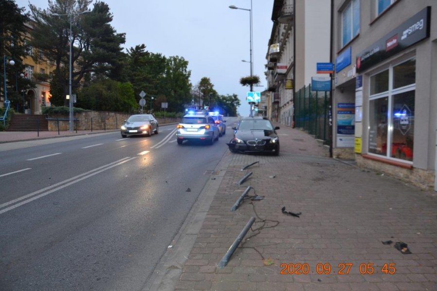 W niedzielę rano, dyżurny tarnowskiej komendy otrzymał informację, że na chodniku przy ul. Mickiewicza stoi zaparkowany samochód BMW bez kierowcy. Pojazd był mocno uszkodzony, a słupki oddzielające chodnik od pasa drogowego przewrócone.