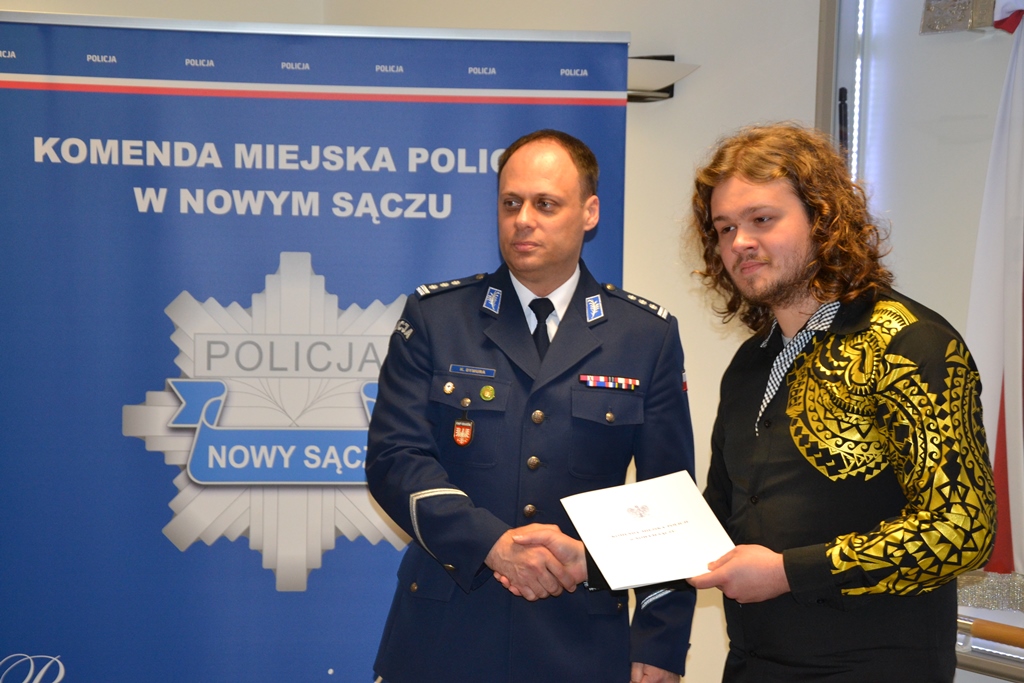 22 marca br. Komendant Miejski Policji w Nowym Sączu, insp. dr Krzysztof Dymura podziękował Panu Filipowi z Nowego Sącza oraz Panu Piotrowi z Krakowa za właściwą reakcję i wzorową postawę, dzięki której nieprzytomny mężczyzna na czas otrzymał pomoc. Do zdarzenia doszło 5 marca br. na ulicy Nawojowskiej w Nowym Sączu, w ciągu drogi krajowej nr 75. Wówczas kierujący samochodem osobowym marki BMW nagle zjechał na przeciwległy pas ruchu. Był nieprzytomny. Dwóch przejeżdżających obok kierowców postanowiło zatrzymać się, by sprawdzić, co się stało i czy ktoś nie potrzebuje pomocy. Okazało się, że w samochodzie był tylko kierujący. Pan Filip i Pan Piotr natychmiast udzielili mu pierwszej pomocy i wezwali na miejsce służby ratunkowe. Dzięki ich właściwej postawie kierowca BMW szybko trafił do szpitala.