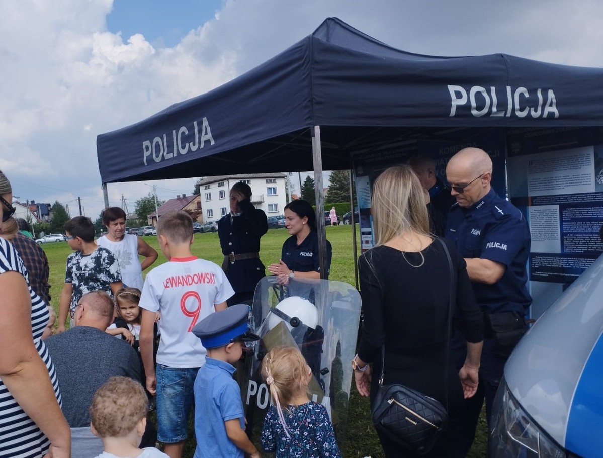 Policyjne stoisko profilaktyczno - historyczne przygotowali policjanci z Komendy Powiatowej Policji w Oświęcimiu wspólnie z przedstawicielami Grupy Rekonstrukcji Historycznej Posterunek Policji Państwowej w Oświęcimiu. Na stoisku promowano zasady bezpieczeństwa, służbę policjanta oraz historię przedwojennej Policji, która w tym roku obchodziła 104. rocznicę powstania.