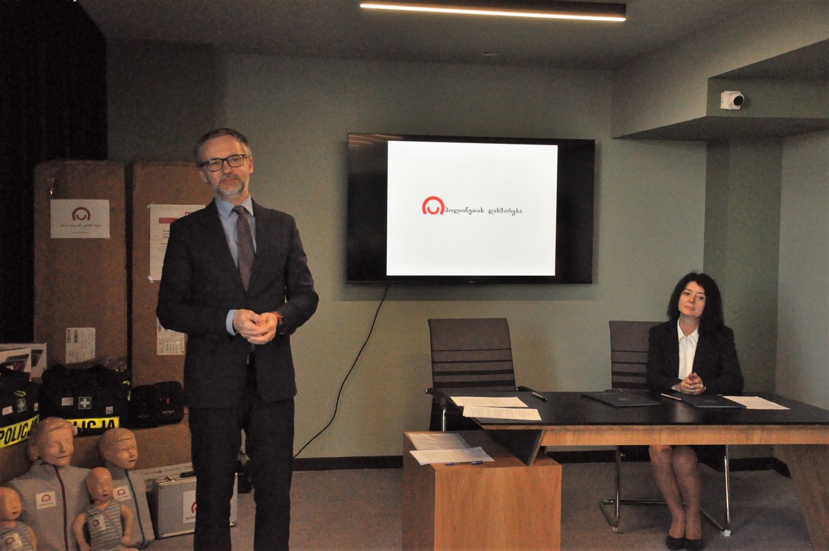 Dzięki zawarciu umowy darowizny pomiędzy Komendą Wojewódzką Policji w Krakowie, a Ministerstwem Spraw Wewnętrznych Gruzji, przekazano specjalistyczny sprzęt, który będzie wykorzystywany m.in. do udzielania pomocy poszkodowanym w wypadkach drogowych, do prowadzenia szkoleń z zakresu pierwszej pomocy, a także do wspomagania działań służby ruchu drogowego w Gruzji.