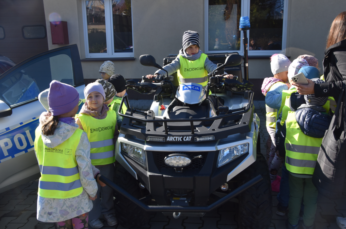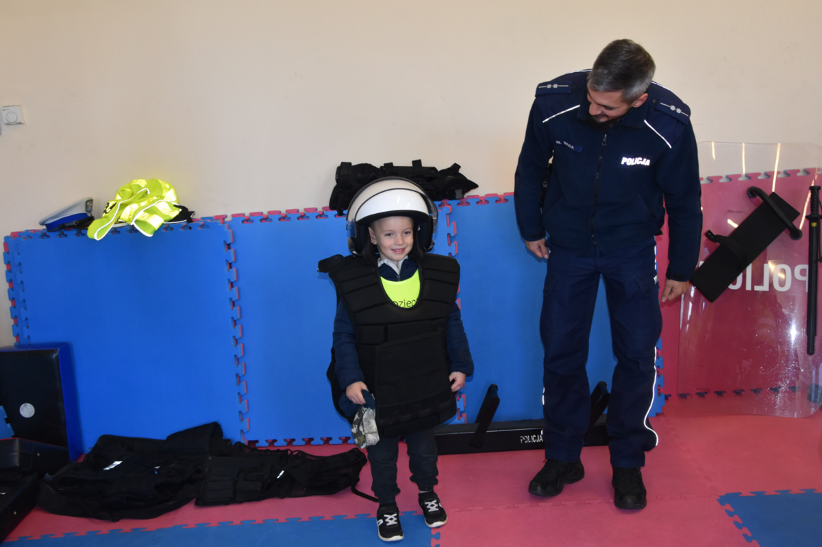 W środę i czwartek (16 i 17 października br.) Komendę Powiatową Policji w Bochni odwiedzili uczniowie Miejskiego Przedszkola „Górniczy Kącik” w Bochni. Najmłodsi spotkali się z policjantami Zespołu ds. Nieletnich, którzy przeprowadzili dla nich spotkania profilaktyczne. W ich trakcie dzieci zapoznały się z przepisami ruchu drogowego i korzyściami, które płyną z noszenia elementów odblaskowych. Policjanci opowiedzieli im również o swojej codziennej służbie, prezentując przy tym sprzęt, taki jak tarcze czy kaski oraz elementy umundurowania - kamizelki taktyczne czy odblaskowe. Przybyłe do komendy dzieci odbyły również spotkanie z policyjnym technikiem kryminalistyki. Funkcjonariusz na przykładach przedstawił proces zbierania odcisków palców. Praktyczny pokaz zabezpieczenia tych śladów cieszył się tak dużym zainteresowaniem maluchów, jak policyjne pojazdy, które były ostatnią częścią obu spotkań. Dzieci mogły wejść do policyjnego radiowozu, na policyjnego quada oraz motocykl. Na koniec grupy przedszkolaków wykonały pamiątkowe zdjęcia z mundurowymi.