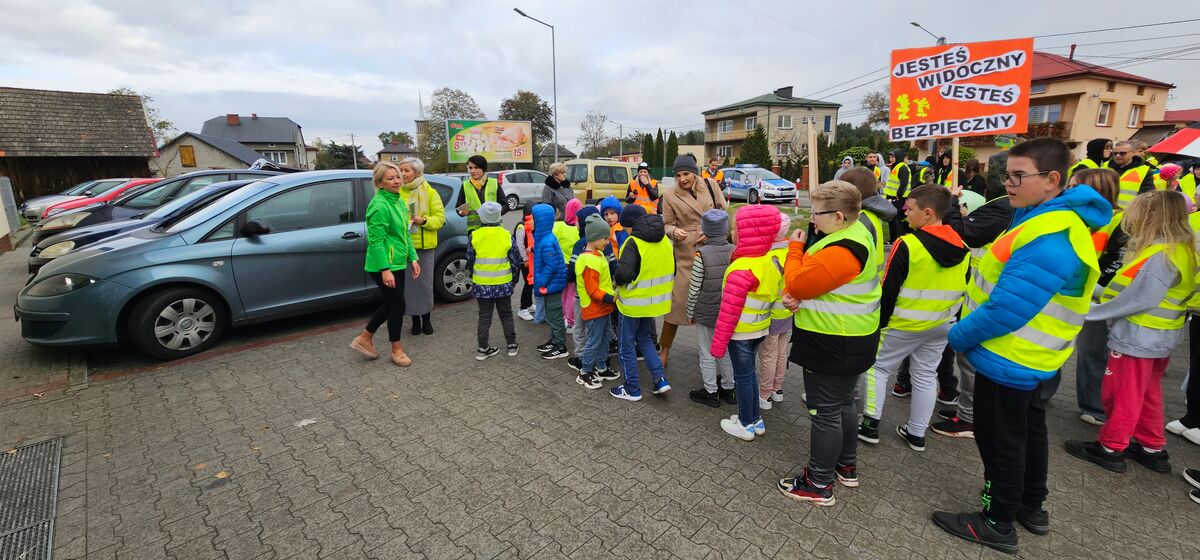15.10 br. mundurowi z Referatu Ruchu Drogowego Komendy Powiatowej Policji w Dąbrowie Tarnowskiej przeprowadzili prelekcję na temat bezpieczeństwa w ruchu drogowym, mówili o obowiązkach pieszych i kierowców, oraz przypomnieli, jak ważne są odblaski, i jak ich stosowanie może wpłynąć na bezpieczeństwo na drodze.