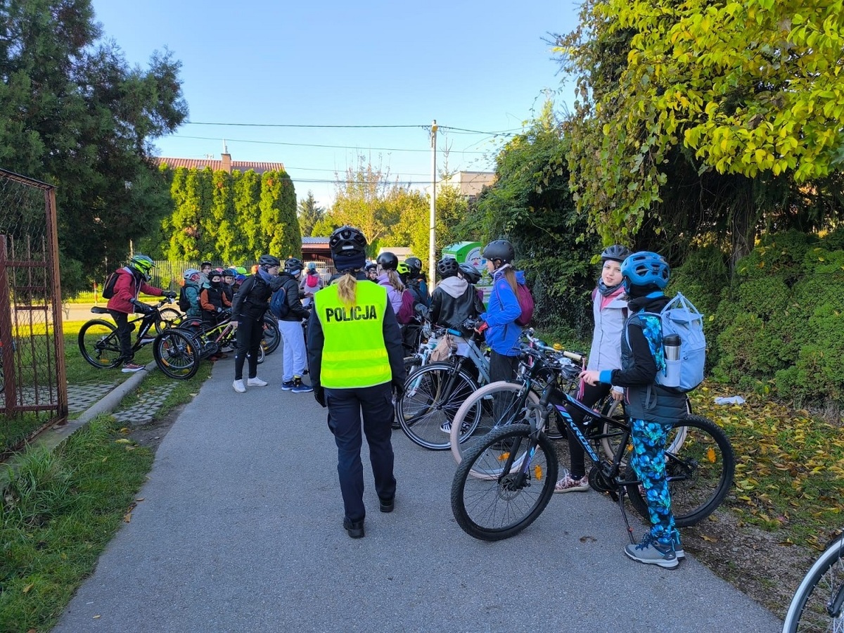 Zanim kolumna wyruszyła w drogę, sprawdzono obowiązkowe wyposażenie rowerów i przypomniano o korzystaniu z kasków. Uczniowie z nauczycielami i policjantkami na rowerach przy dodatkowym zabezpieczeniu policyjnych motocykli przemierzyli wyznaczoną trasę. Celem tego było pokazanie zasad w praktyce przy normalnie odbywającym się ruchu pojazdów. Na koniec podsumowano zasadę poruszania się w kolumnie i omówiono elementy, które należałoby poprawić. Uczniowie z uwagą wysłuchali podsumowania i stwierdzili, że bez eskorty funkcjonariuszy taka wyprawa nie byłaby prosta, ponieważ uczestnicy musieliby jeszcze bardziej uważać.