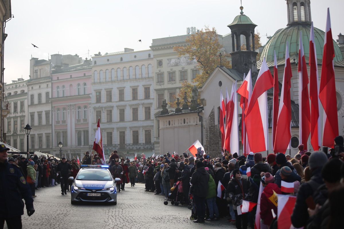 Uroczystości rozpoczęły się od złożenia kwiatów przy pomniku Żołnierzy Polski Walczącej na Powiślu. Wiązanki spoczęły także w krypcie pod Wieżą Srebrnych Dzwonów. Następnie, w Katedrze Wawelskiej odbyła się uroczysta msza święta w intencji Ojczyzny, której przewodniczył arcybiskup Marek Jędraszewski. Jak co roku uczestnicy obchodów przeszli w patriotycznym pochodzie ze Wzgórza Wawelskiego ul. Grodzką, przez Rynek Główny, ulicą Floriańską, na plac Jana Matejki, gdzie odbyła się główna część uroczystości, i gdzie poszczególne delegacje złożyły kwiaty. Policję reprezentowali Komendant Wojewódzki Policji w Krakowie inspektor Piotr Morajko oraz Komendant Miejski Policji w Krakowie podinspektor Paweł Jastrząb. Uroczystości uświetnił swoją obecnością Poczet Sztandarowy KWP w Krakowie.