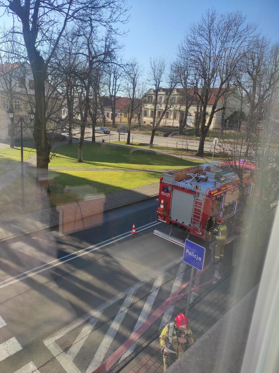 Ćwiczenia przeciwpożarowe w Komisariacie Policji w Nowym Wiśniczu
