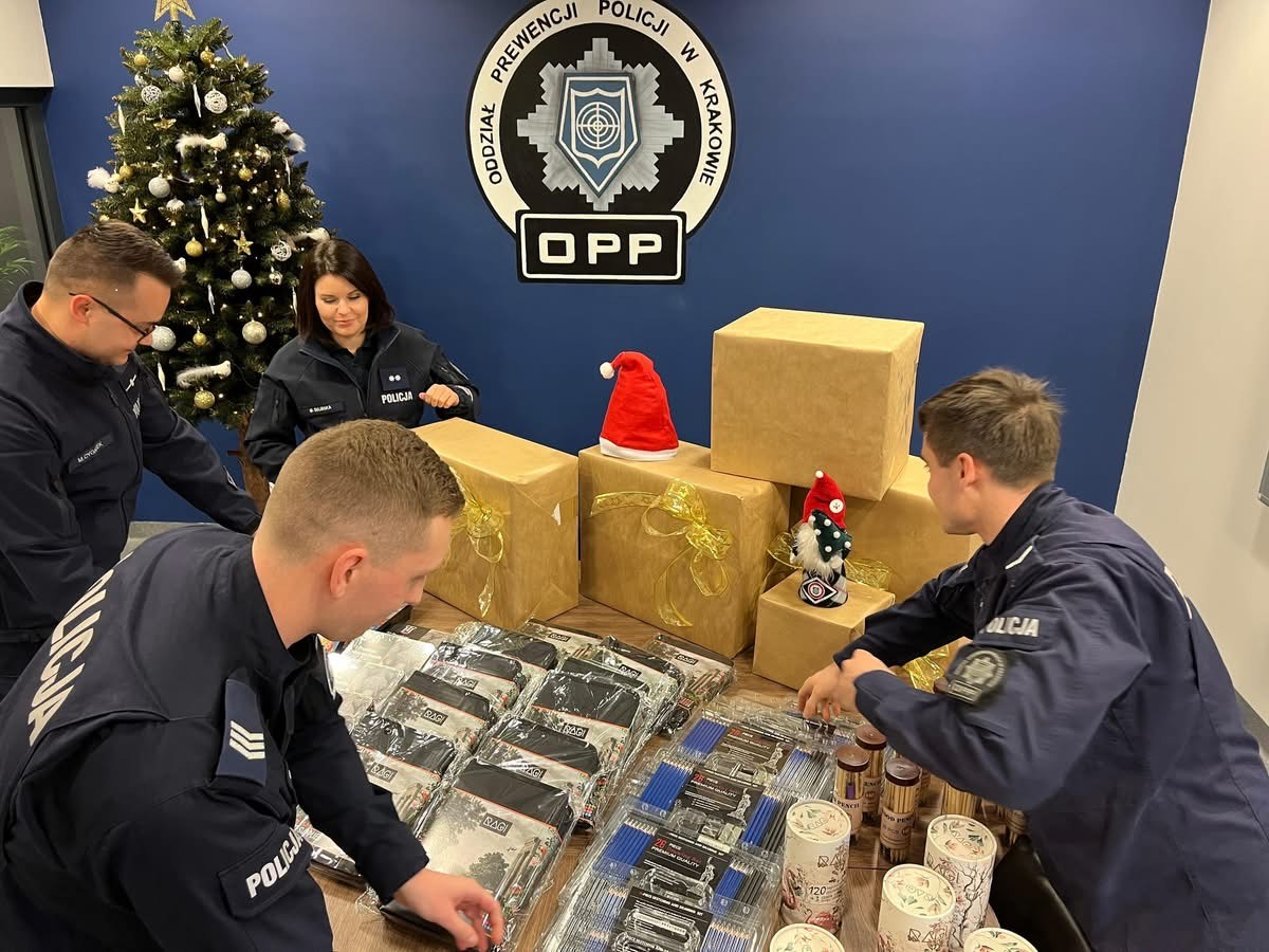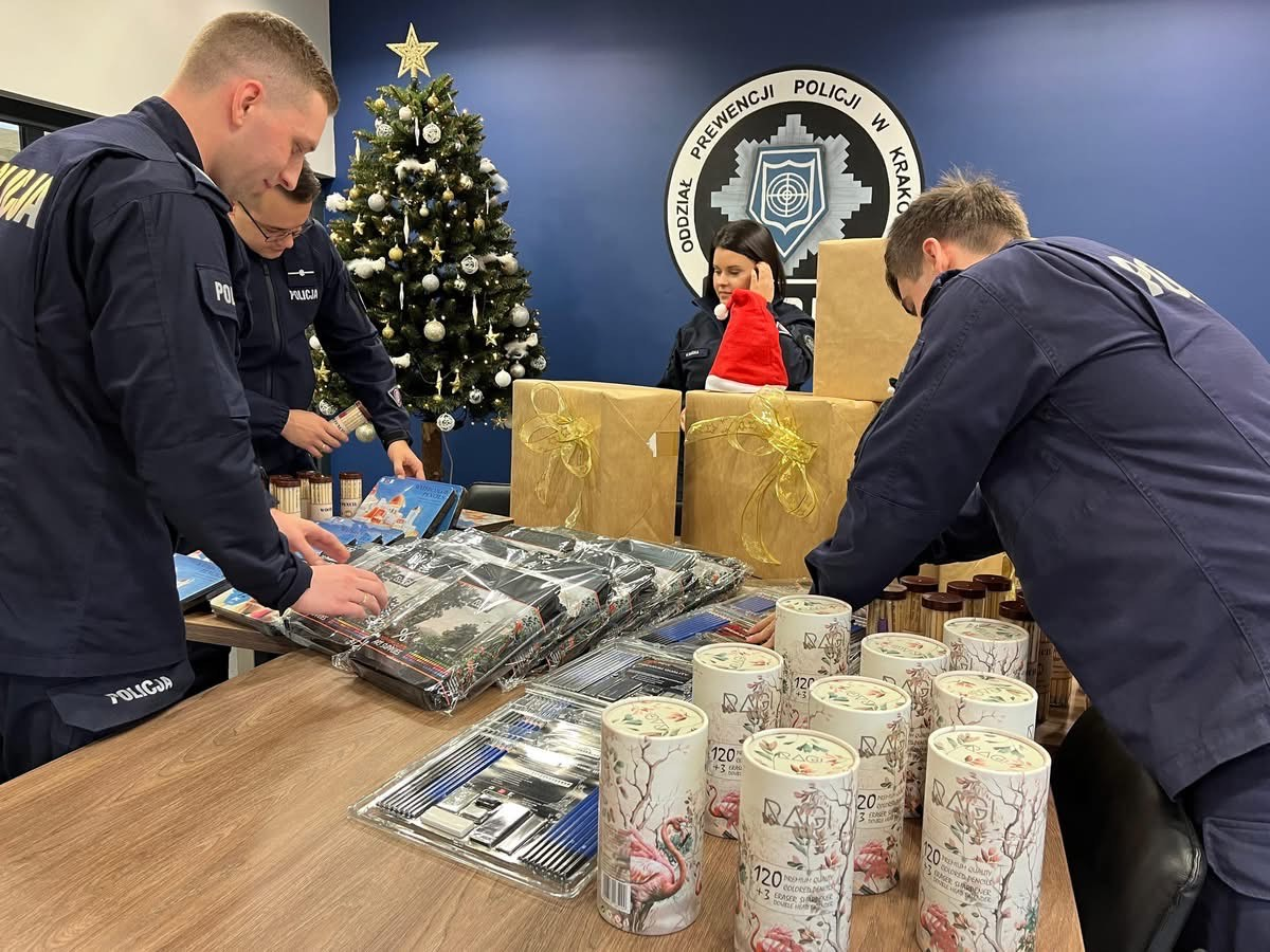 W ostatnich dniach policjantki, policjanci i pracownicy Oddziału Prewencji Policji w Krakowie zaangażowali się w przygotowanie wyjątkowych paczek świątecznych. Od Dowódcy po posterunkowych, każdy dołożył swoją cegiełkę, by magia Świąt Bożego Narodzenia dotarła do najmniejszych pacjentów. Efektem tej wspólnej pracy jest 400 pięknie przygotowanych prezentów, które zostały przetransportowane do magazynu Świętego Mikołaja. Już 6 grudnia Święty Mikołaj odwiedzi dzieci na szpitalnych oddziałach, przynosząc im nie tylko upominki, ale przede wszystkim radość, nadzieję i chwilę beztroski.