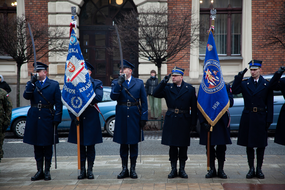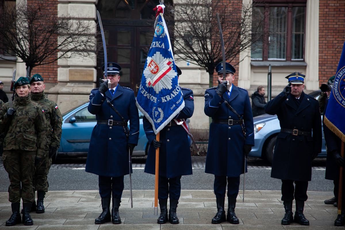 Wśród obecnych gości byli m.in. przedstawiciele Małopolskiego Urzędu Wojewódzkiego, Zastępca Komendanta Wojewódzkiego Policji, insp. Maciej Kubiak, oraz poczet sztandarowy Komendy Wojewódzkiej Policji, którzy oddali hołd bohaterom tamtych czasów.