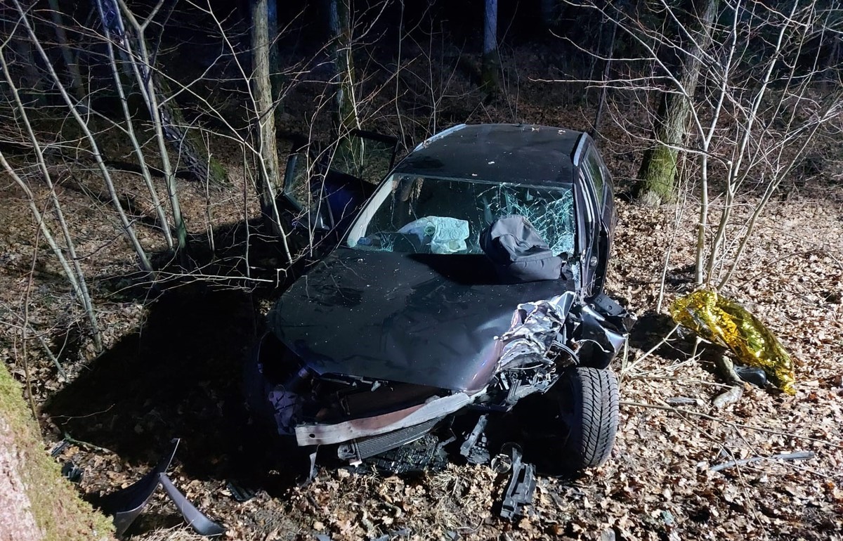 Do szpitala z poważnymi obrażeniami ciała trafił 35 – letni kierowca, który będąc pod wpływem alkoholu zderzył się z drzewem.
