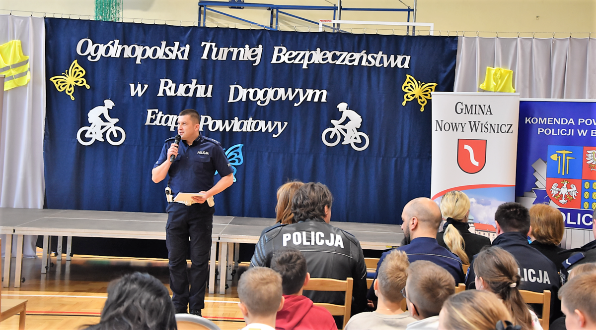 W piątek (11 kwietnia br.) w Szkole Podstawowej im. Jana Pawła II w Starym Wiśniczu odbył się powiatowy finał Ogólnopolskiego Turnieju Bezpieczeństwa w Ruchu Drogowym. Celem Turnieju są działania na rzecz poprawy stanu bezpieczeństwa ruchu drogowego, w tym bezpieczeństwa dzieci i młodzieży szkolnej. W konkursie wzięło udział 59 uczniów szkół podstawowych z terenu powiatu bocheńskiego, którzy zostali podzieleni na dwie kategorie wiekowe. Pierwszą stanowili uczniowie klas 4-5, natomiast drugą uczniowie z klas 6-8.