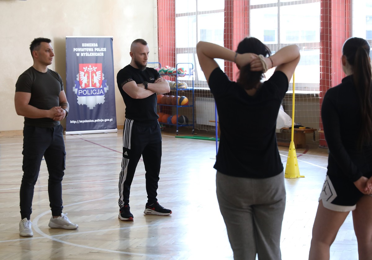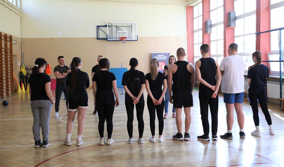 Na początku spotkania funkcjonariusze zapoznali uczniów z zasadami oraz techniką wykonywania ćwiczeń wchodzących w skład testu. Składał się on z czterech elementów: