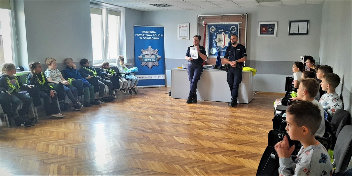 Drugoklasiści z oświęcimskiej trójki, poznawali zasady bezpieczeństwa oraz służbę policjanta
