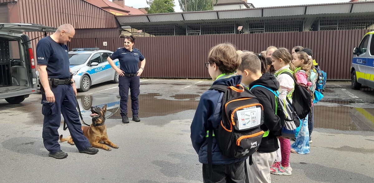 W trakcie spotkania, które odbyło się w czwartek (22.05.2025) oficer prasowa oświęcimskiej komendy Policji, policjantka z Zespołu ds. Nieletnich i Patologii oraz dzielnicowi, przekazali młodym mieszkańcom Oświęcimia zagadnienia związane z zasadami bezpieczeństwa w domu i na drodze, zasadami bezpieczeństwa w Internecie, a także mając na względzie przeciwdziałanie przemocy rówieśniczej, poruszyły zagadnienia dotyczące szacunku wobec drugiego człowieka, umiejętnego wzywania służb ratunkowych oraz udzielania pierwszej pomocy. Następnie opowiedziały jak interesująca i odpowiedzialna jest praca policjanta, w której najważniejsze jest niesienie pomocy drugiemu człowiekowi. Opowiedziały jak wygląda służba policjantów z różnych pionów Policji prezentując sprzęt służbowy i umundurowanie policjanta. Na parkingu policyjnym policjanci zaprezentowali uczniom radiowóz, a przewodnik psa zaprezentował swoich czworonożnych partnerów w służbie.