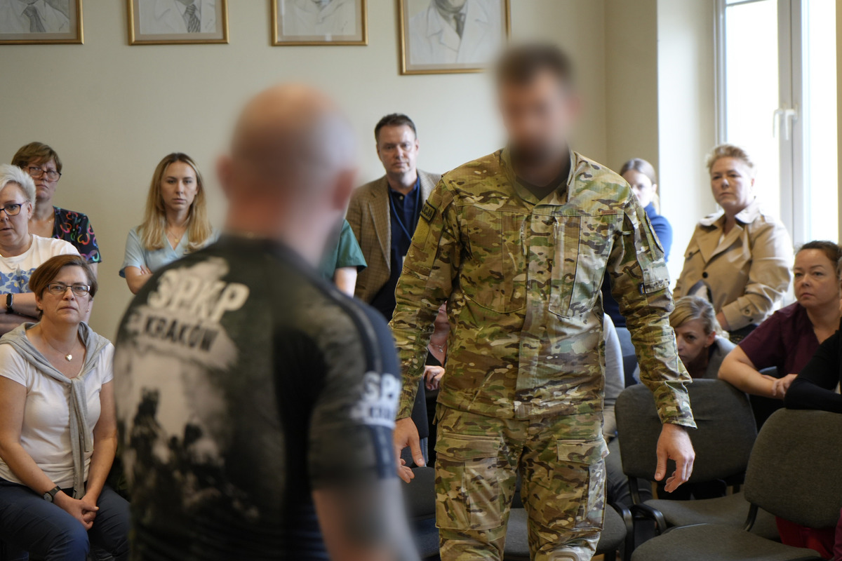 Dzisiaj (29 maja br.) odbyło się kolejne szkolenie, prowadzone przez funkcjonariuszy z Samodzielnego Pododdziału Kontrterrorystycznego Policji w Krakowie, dla personelu medycznego Szpitala Miejskiego Specjalistycznego. im. Gabriela Narutowicza w Krakowie. Funkcjonariusze przeszkolili około 120 osób.