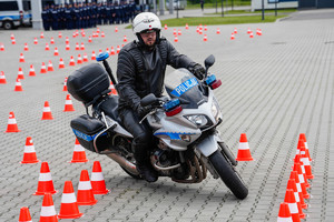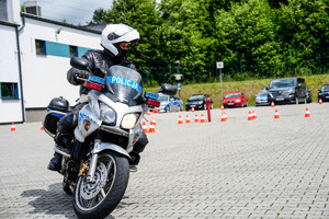 - Jazda sprawnościowa motocyklem służbowym po wyznaczonym torze.