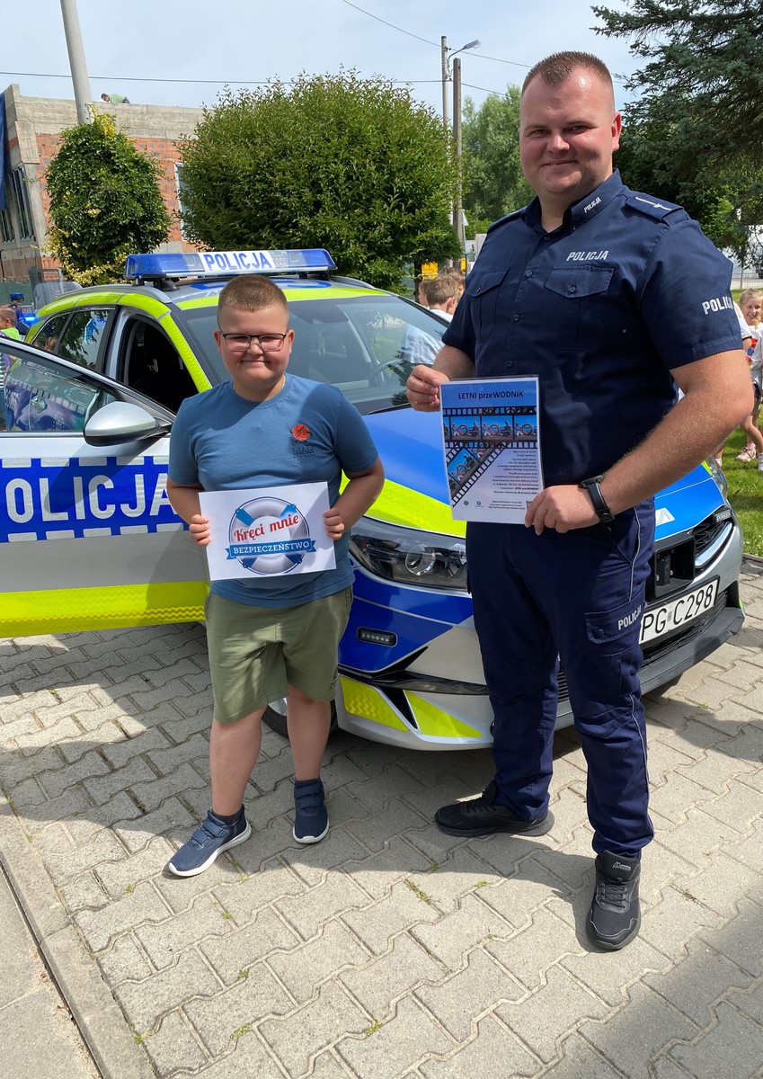 Policjanci przeprowadzili prelekcję dla ponad 200 uczniów. Głównym tematem spotkania było promowanie akcji „Kręci mnie bezpieczeństwo w lecie”, a także konkursu plastyczno – filmowego „Letni przeWodnik”. W pierwszej kolejności policjanci przeprowadzili spotkanie z uczniami klas I-III, których uczyli, jak bezpiecznie spędzać czas nad wodą czy w górach. Przypomnieli także o numerze alarmowym 112. Ponadto mundurowi edukowali najmłodszych o podstawowych zasadach bezpieczeństwa w ruchu drogowym oraz o bezpiecznej jeździe na rowerze. Po zakończonej prelekcji uczniowie otrzymali edukacyjne kolorowanki, mogli odbić swoje odciski palców w specjalnych „paszportach”, a także usiąść za kierownicą radiowozu i motocykli policyjnych. Na kolejny wykład przybyli starsi uczniowie z klas IV-VIII. Oprócz propagowania bezpieczeństwa podczas zbliżających się wakacji funkcjonariusze poruszyli bardzo istotny temat wśród młodzieży, czyli bezpieczeństwo w sieci, hejt i „mowa nienawiści”. Uczestnicy spotkania mogli się dowiedzieć z jakimi zagrożeniami mogą się spotkać, jak na nie reagować i jakie są konsekwencje prawne takich zachowań. Uczniowie najstarszej – ósmej klasy otrzymali informacyjne ulotki promujące zawód policjanta. To właśnie oni w niedalekiej przyszłości będą decydować o kierunku swojego dalszego kształcenia i zawodowej kariery.