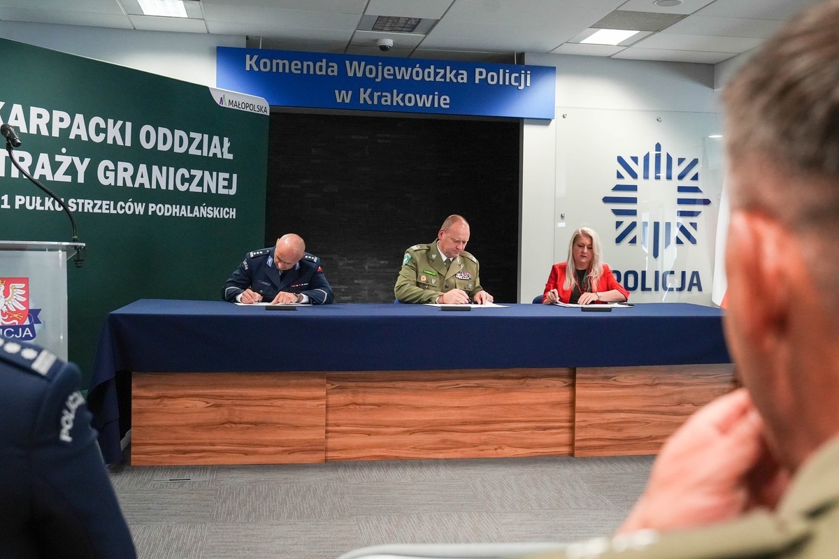 Dzisiaj, w siedzibie Komendy Wojewódzkiej Policji w Krakowie odbyła się uroczystość podpisania trójstronnych porozumień pomiędzy Policją, Strażą Graniczną oraz dyrektorami 14 szkół, w których utworzone zostaną oddziały o profilu mundurowym. Porozumienia mają na celu przygotowanie młodzieży do przyszłej służby w formacjach odpowiedzialnych za bezpieczeństwo państwa.