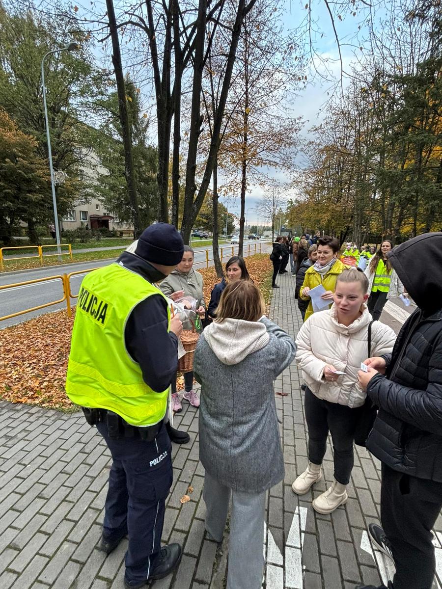Podczas wydarzenia uczniowie, nauczyciele oraz policjanci wspólnie promowali bezpieczne zachowania na drodze. Uczestnicy działań przypominali zasady prawidłowego przechodzenia przez jezdnię, zwracali uwagę na konieczność noszenia elementów odblaskowych oraz rozdawali ulotki informacyjne. Nie zabrakło również rozmów z uczniami i rodzicami na temat codziennego bezpieczeństwa w drodze do szkoły.