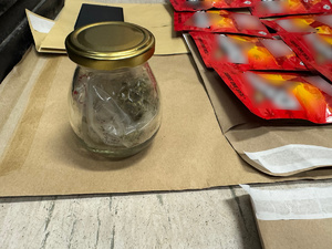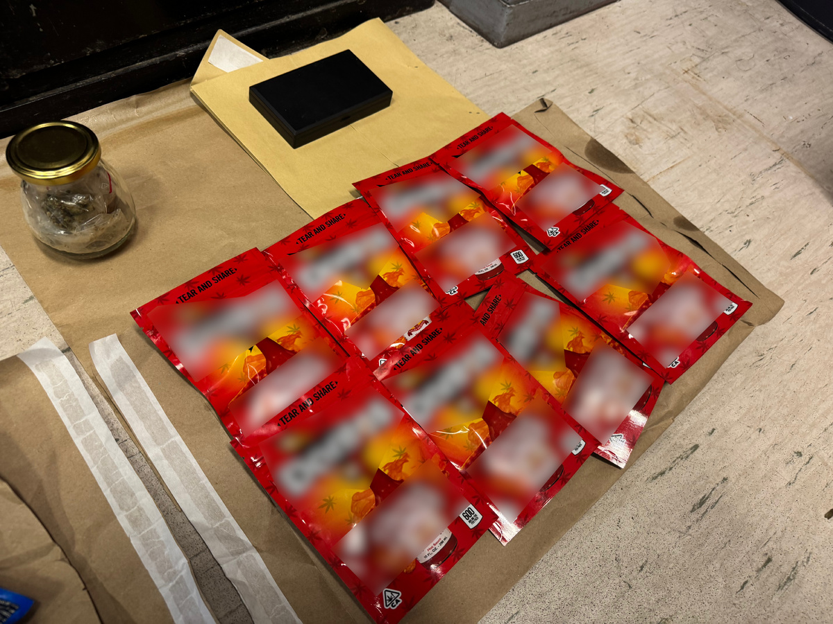 W toku przeprowadzonych czynności mundurowi w mieszkaniach zatrzymanych mężczyzn zabezpieczyli różnego rodzaju opakowania z suszem roślinnym koloru brunatno zielonego, opakowania z białą sypką substancją, opakowania zawierające suszone grzyby, różne opakowania z n/n substancją, produkty spożywcze z zawartością THC, opakowania z zawartością e papierosów oraz jednorazowe papierosy tzw. PEN bez znaków akcyzowych, znaczne ilości gotówki, telefony komórkowe, karty SIM, naklejki na opakowania z kodem kreskowym i napisem THC, wagi elektroniczne i laptopy. Zabezpieczony susz roślinny poddano testom, które wykazały, że jest to marihuana, natomiast pozostałe substancje zostaną przebadane w policyjnym laboratorium. U jednego z zatrzymanych ujawniono również dokumenty oraz telefony nieznanego pochodzenia.