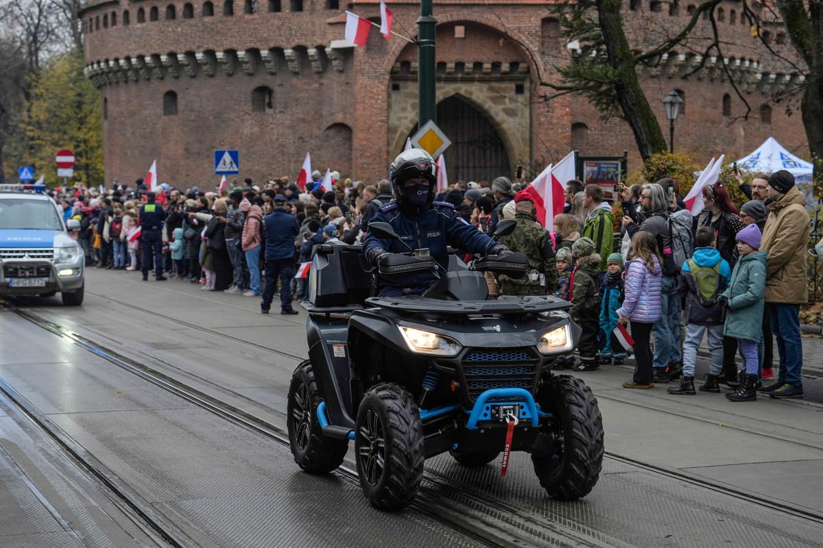 W zastępstwie Komendanta Wojewódzkiego Policji w Krakowie nadinspektora Artura Bednarka, który w tym czasie uczestniczył w obchodach Narodowego Święta Niepodległości w Warszawie, małopolską Policję reprezentował jego pierwszy zastępca, inspektor Maciej Kubiak. Towarzyszył mu Komendant Miejski Policji w Krakowie inspektor Paweł Jastrząb. Uroczystości uświetnił swoją obecnością Pluton Kompanii Honorowej Komendy Wojewódzkiej Policji w Krakowie. Obchody zwieńczyła defilada na ul. Basztowej, w której uczestniczyli małopolscy policjanci. W trakcie defilady uczestnicy mogli oglądać policyjne radiowozy, motocykle, policyjną łódź oraz quada.