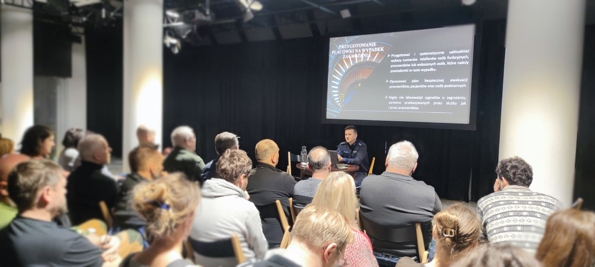 Policjanci Wydziału Prewencji Komendy Miejskiej Policji w Krakowie, przeprowadzili w Narodowym Starym Teatrze im. Heleny Modrzejewskiej, dwudniowy cykl specjalistycznych warsztatów poświęconych bezpieczeństwu w instytucjach kultury. Warsztaty miały na celu wzmocnienie świadomości zagrożeń oraz przygotowanie personelu do skutecznego reagowania w sytuacjach kryzysowych.