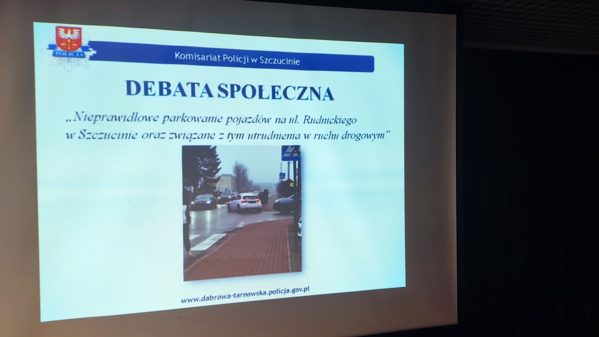 W Samorządowym Centrum Kultury i Bibliotek w Szczucinie odbyła się debata inicjująca poświęcona problemowi nieprawidłowego parkowania na ul. Rudnickiego w rejonie szkoły podstawowej. Spotkanie zostało zorganizowane w ramach działań „Porozmawiajmy o bezpieczeństwie - możesz mieć na nie wpływ”.
