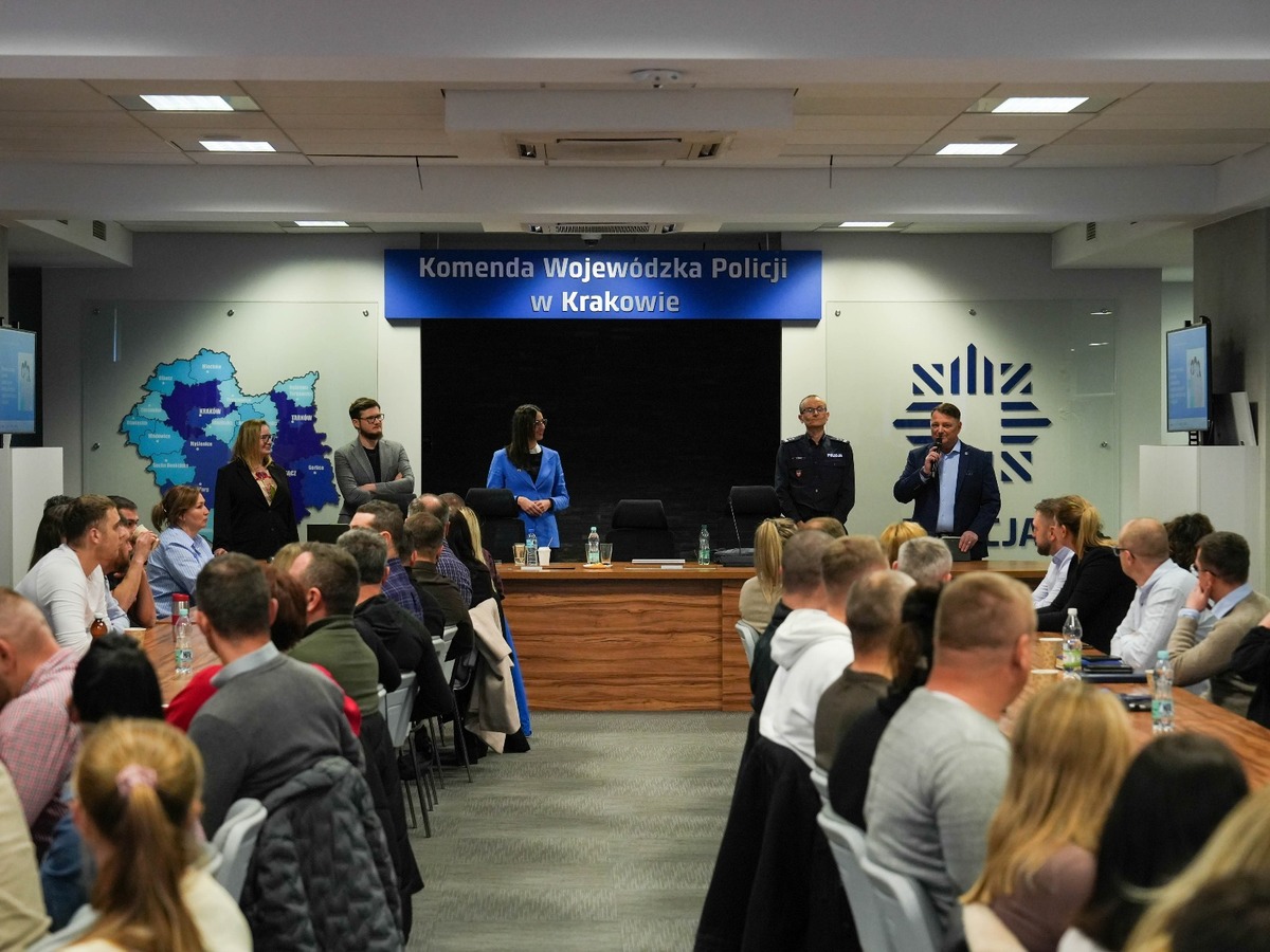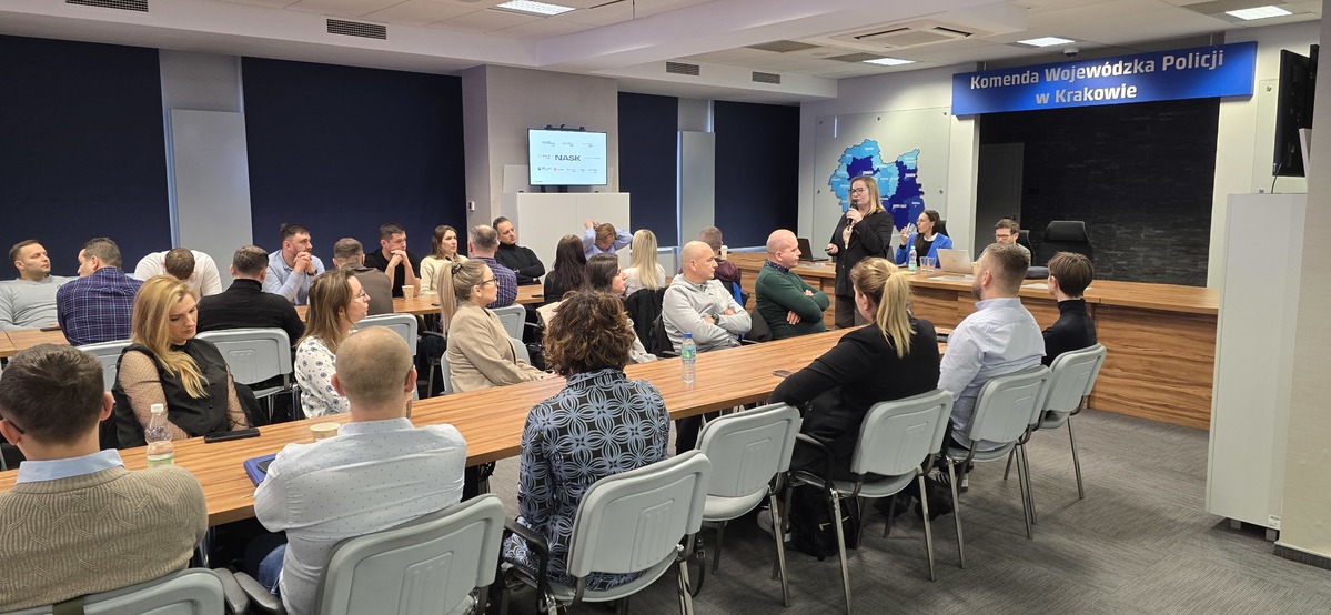 W ubiegłym tygodniu (3 grudnia 2025 roku) w Komendzie Wojewódzkiej Policji w Krakowie odbyło się lokalne doskonalenie zawodowe obejmujące Wybrane aspekty Cyberzagrożeń - przeznaczone dla policjantek i policjantów realizujących w swojej codziennej służbie zadania m.in. z zakresu profilaktyki zagrożeń społecznych na terenie województwa małopolskiego.