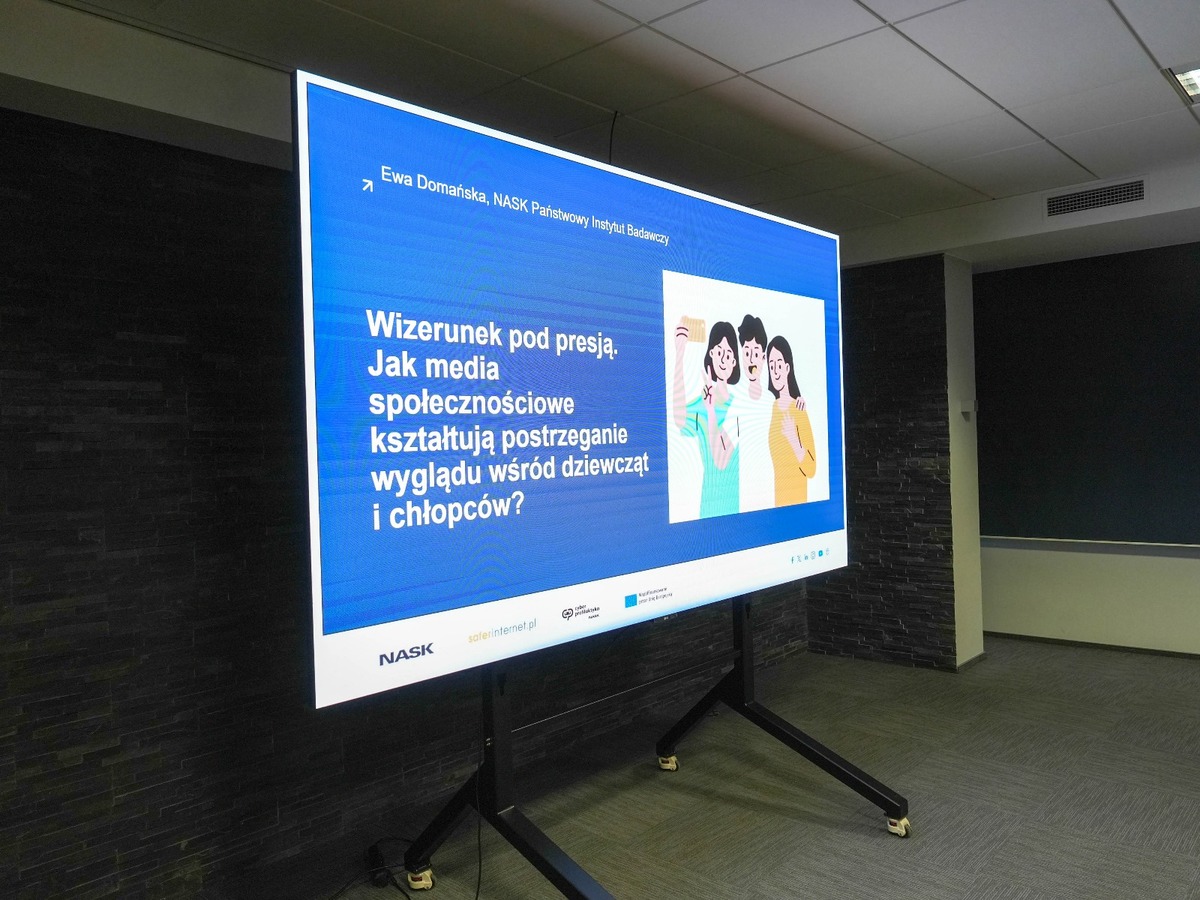 Cykl wykładów rozpoczęła Pani Ewa Domańska - Kierowniczka Zespołu ds. Ochrony Dzieci i Młodzieży przed Zagrożeniami w Internecie NASK, która przedstawiła uczestnikom szkolenia tematykę rozpoznawania fałszywych treści w Internecie oraz poruszyła kwestię presji wyglądu i konsekwencji psychologicznych dla młodzieży z nią związanych.