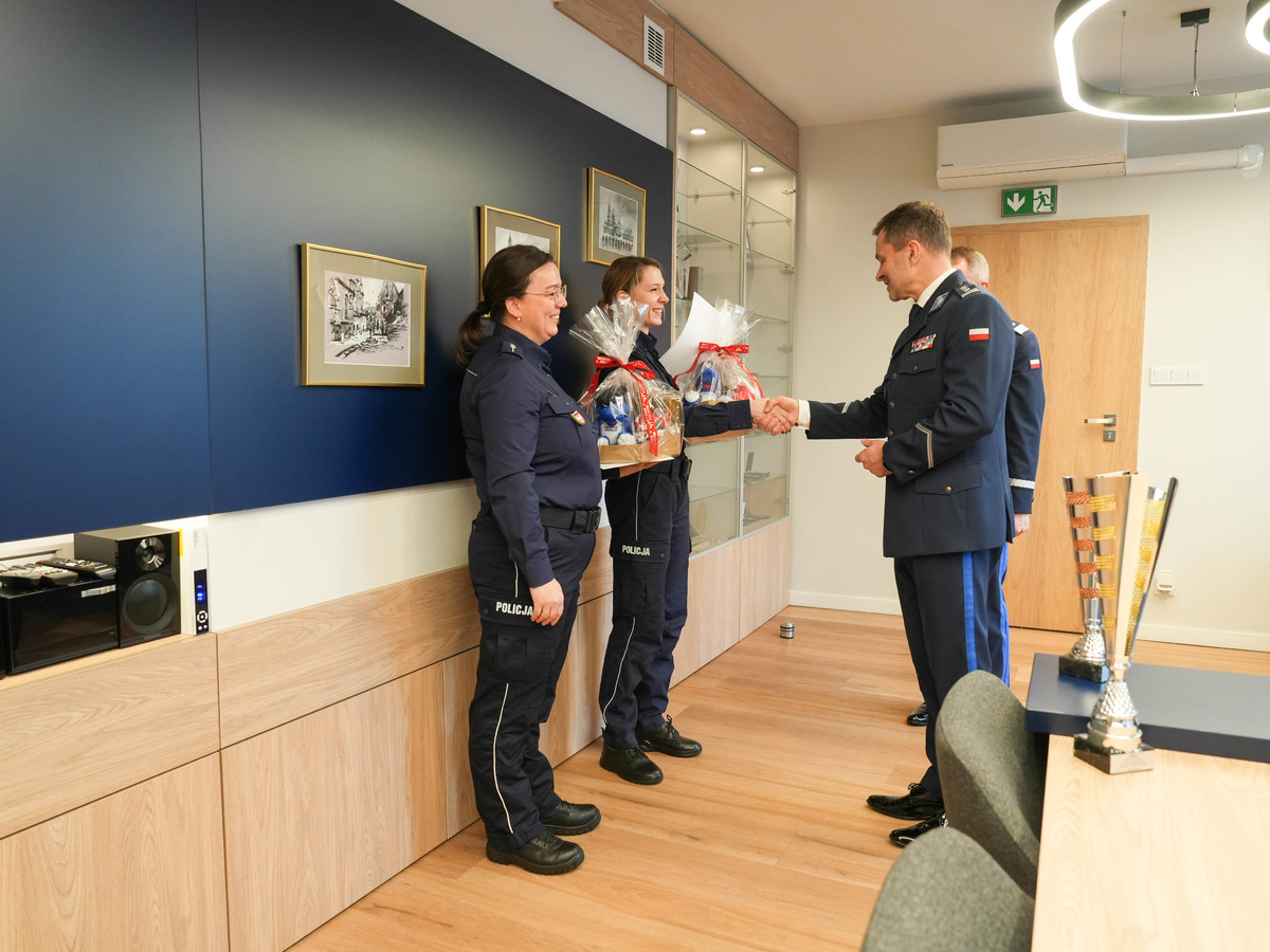 Podczas dzisiejszego uroczystego spotkania, nadinspektor Artur Bednarek Komendant Wojewódzki Policji w Krakowie wraz ze swoim I Zastępcą inspektorem Maciejem Kubiakiem wysłuchali relacji z przebiegu zawodów, a następnie podziękowali policjantkom za ich zaangażowanie i trud włożony w przygotowanie do konkursu oraz reprezentowanie garnizonu małopolskiego. Wyróżnieni policjanci podziękowali za otrzymane gratulacje, zapewniając, że zdobyta wiedza i umiejętności będą nadal wykorzystywane w ich codziennej służbie.