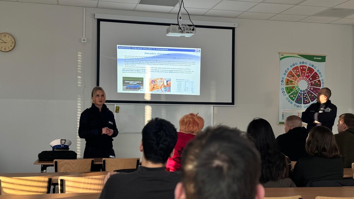 Z końcem ubiegłego i początkiem bieżącego tygodnia w Technikum oraz Liceum Cosinus przy ul. Lublańskiej w Krakowie odbyły się spotkania edukacyjne z policjantami Wydziału Ruchu Drogowego Komenda Miejska Policji w Krakowie. Mundurowi o bezpieczeństwie w ruchu drogowym rozmawiali z uczniami 23 klas.