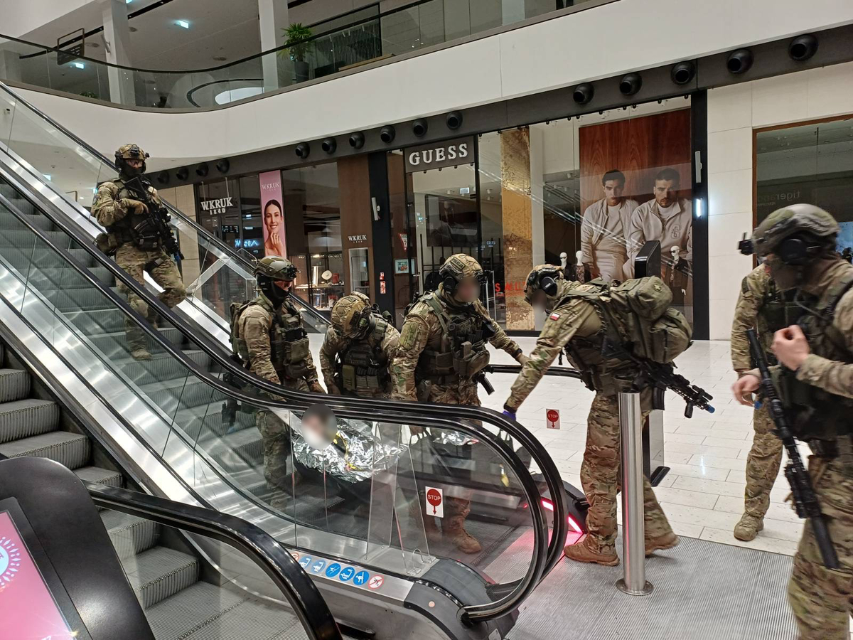 Ćwiczenia policyjnych kontrterrorystów w jednej z krakowskich galerii handlowych