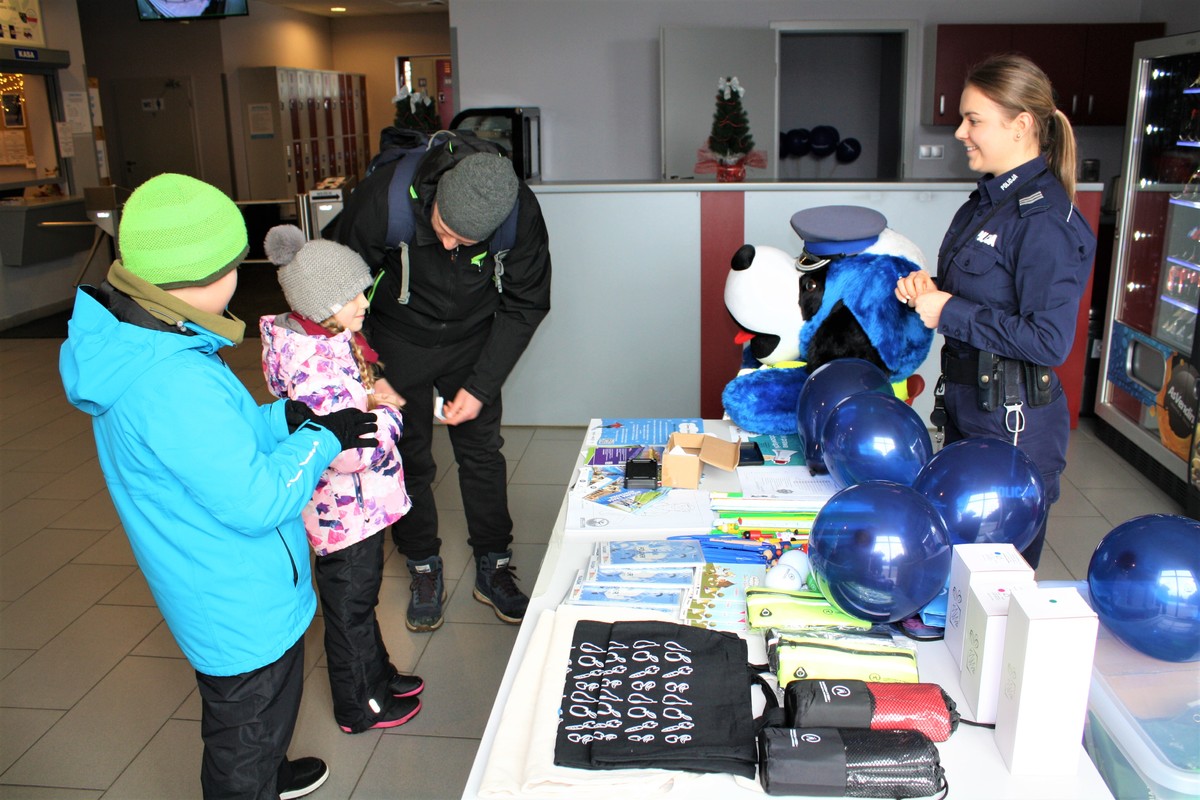 Działania miały charakter edukacyjny i były prowadzone w bezpośrednim kontakcie z uczestnikami zabaw. Najmłodsi chętnie zadawali pytania, dzielili się swoimi doświadczeniami i aktywnie uczestniczyli w rozmowach dotyczących bezpieczeństwa. Dzieci chętnie brały udział w przygotowanych przez policjantów quizach i konkursach związanych z zimowym wypoczynkiem.
