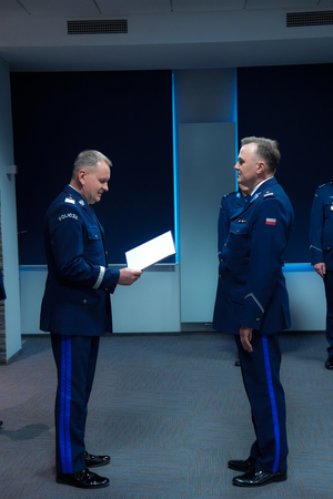 Awansów policjantom pogratulowali Komendant Wojewódzki Policji w Krakowie nadinspektor Artur Bednarek, Zastępca Komendanta Wojewódzkiego Policji w Krakowie insp. Paweł Krauz, Zastępca Komendanta Wojewódzkiego Policji w Krakowie insp. Mariusz Kudela oraz przybyli na uroczystość Komendant Miejski Policji w Nowym Sączu insp. Adam Bukański oraz pełniąca obowiązki Naczelnika Wydziału Postępowań Administracyjnych KWP w Krakowie podinsp. Renata Gładysz.