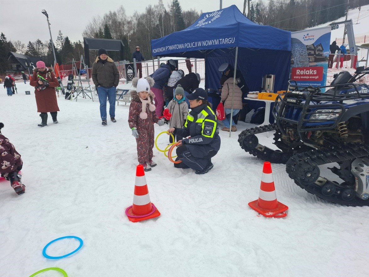 31 stycznia na stacji narciarskiej „Długa Polana” w Nowym Targu funkcjonariusze Komendy Powiatowej Policji w Nowym Targu, wspólnie z partnerami działań profilaktycznych, przeprowadzili przedsięwzięcie pod nazwą „Bezpieczni Zimą”. Wydarzenie zostało zorganizowane w ramach ogólnopolskich kampanii „Kręci mnie bezpieczeństwo w zimie” oraz „Bezpieczne Ferie 2026”.