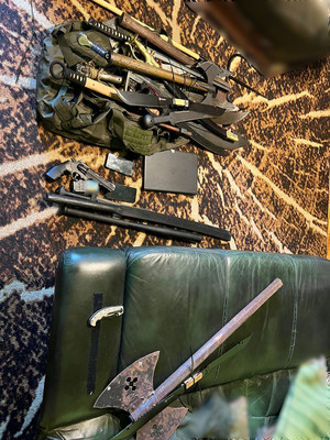 Kilkadziesiąt noży oraz miecze zabezpieczyli policjanci u 38-latka, który wygrażał nimi ekipie budowlanej a potem policjantom