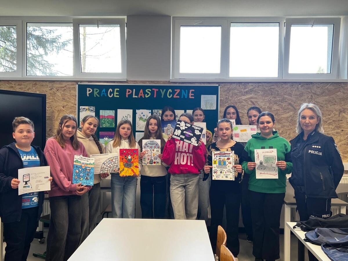 Dzielnicowi z Komendy Powiatowej Policji w Gorlicach oraz jednostek podległych realizują spotkania z dziećmi i młodzieżą z związku zagrożeniami związanymi z korzystaniem z Internetu. Spotkania realizowane są w ciągu całego roku, w zależności od potrzeb. Szczególnie jednak w lutym i marcu, działania te są prowadzone bardzo intensywnie, ponieważ co roku w tym lutym przypada Dzień Bezpiecznego Internetu. W bieżącym roku był to dzień 10 lutego. W Małopolsce, główne działania profilaktyczne w szkołach zostały zaplanowane na luty i marzec br. W trakcie spotkań organizowanych zarówno w szkołach średnich i podstawowych, funkcjonariusze omawiają zagadnienia dotyczące bezpiecznego korzystania z Internetu. Przedstawiają także zagrożenia płynące z niewłaściwego korzystania z sieci internetowej, a zwłaszcza zjawisko cyberprzemocy, hejtu i mowy nienawiści. Mundurowi wyjaśniają, dlaczego nie należy zamieszczać w sieci swoich danych osobowych, jakie są zasady zamieszczania w Internecie zdjęć i filmów i związanej z tym prawnej ochrony wizerunku oraz przedstawiają zagrożenia jakie mogą wyniknąć z nieostrożnego zawierania znajomości internetowych. Co roku w spotkaniach dotyczących zagadnienia bezpieczeństwa korzystania z Internetu realizowanych w ciągu całego roku szkolnego, a szczególnie w miesiącach lutym i marcu, uczestniczy ponad tysiąc młodych osób z terenu powiatu gorlickiego. W związku z Dniem Bezpiecznego Internetu, w bieżącym roku, w siedmiu szkołach podstawowych, z terenu powiatu gorlickiego, udało się także zorganizować, konkursy plastyczne o tematyce zagrożeń związanych z niewłaściwym korzystaniem z Internetu. W ostatnim tygodniu podsumowania konkursów oraz prelekcje dotyczące bezpieczeństwa w sieci i rozdania nagród odbyły się w Zespole Szkolno-Przedszkolnym w Binarowej, Miejskim Zespole Szkół nr 4 w Gorlicach oraz w Szkole Podstawowej w Kobylance. Łącznie do tej pory w prelekcjach i konkursach wzięło udział ponad 900 uczniów szkół podstawowych i średnich.