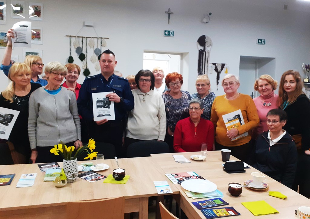 Podczas spotkania z seniorami dzielnicowy szczegółowo omówił zagrożenia, na jakie najczęściej narażone są osoby starsze. Policjant przypomniał o znanych, ale wciąż modyfikowanych przez oszustów metodach, m.in. „na wnuczka”, czy „na funkcjonariusza”, opierających się na manipulowaniu seniorami, którzy w emocjach chcą pomóc swoim bliskim oraz o sytuacjach, w których sprawcy podają się za urzędnika lub pracownika banku. Dzielnicowy radził seniorom, by przede wszystkim stosowali zasadę ograniczonego zaufania, byli rozważni i nie przekazywali pieniędzy nieznajomym osobom ani nie zostawiali ich w umówionym miejscu.