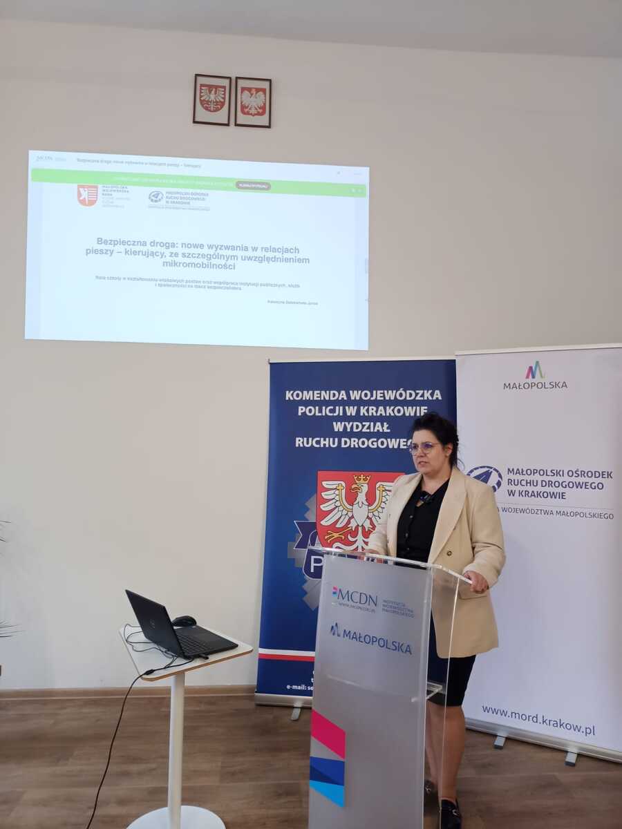 Policjantka z WRD KWP w Krakowie uczestniczyła w konferencji edukacyjnej „Nowe wyzwania w relacjach pieszy – kierujący ze szczególnym uwzględnieniem mikromobilności”