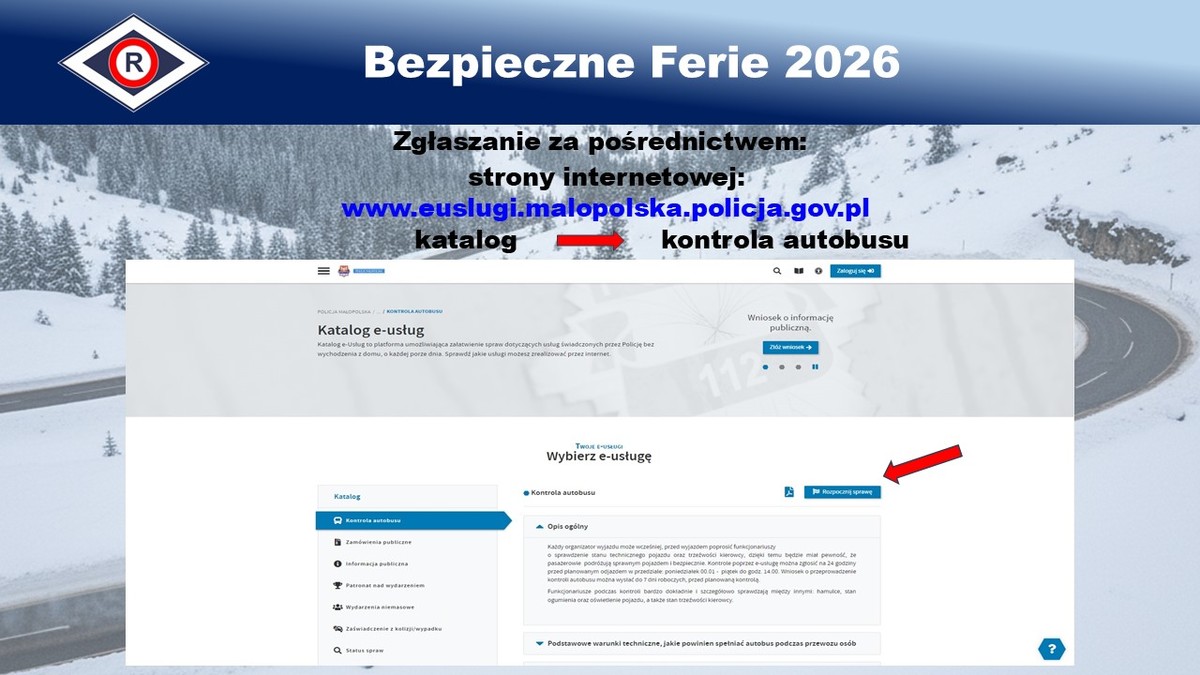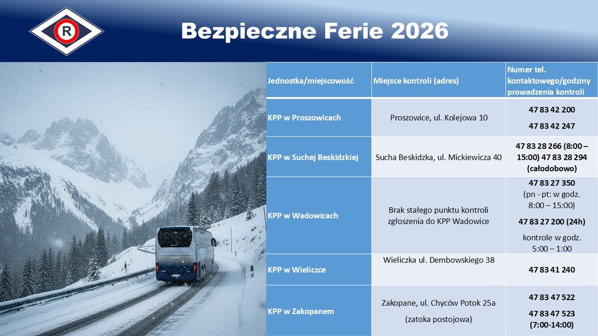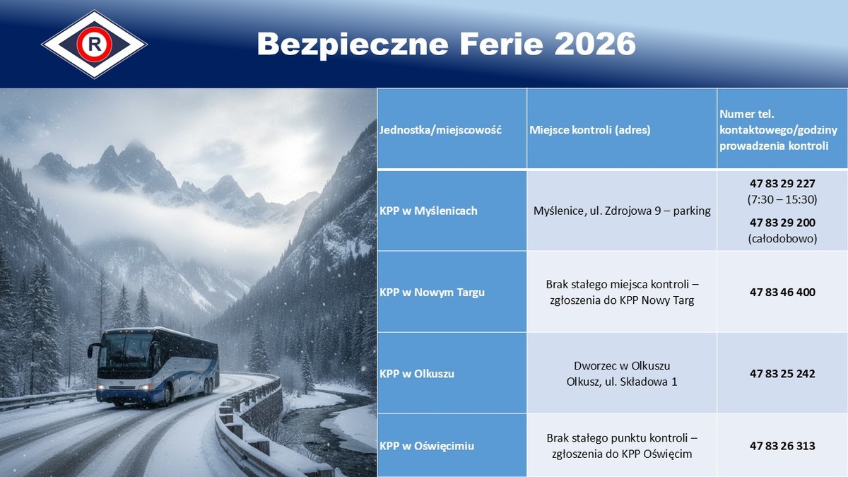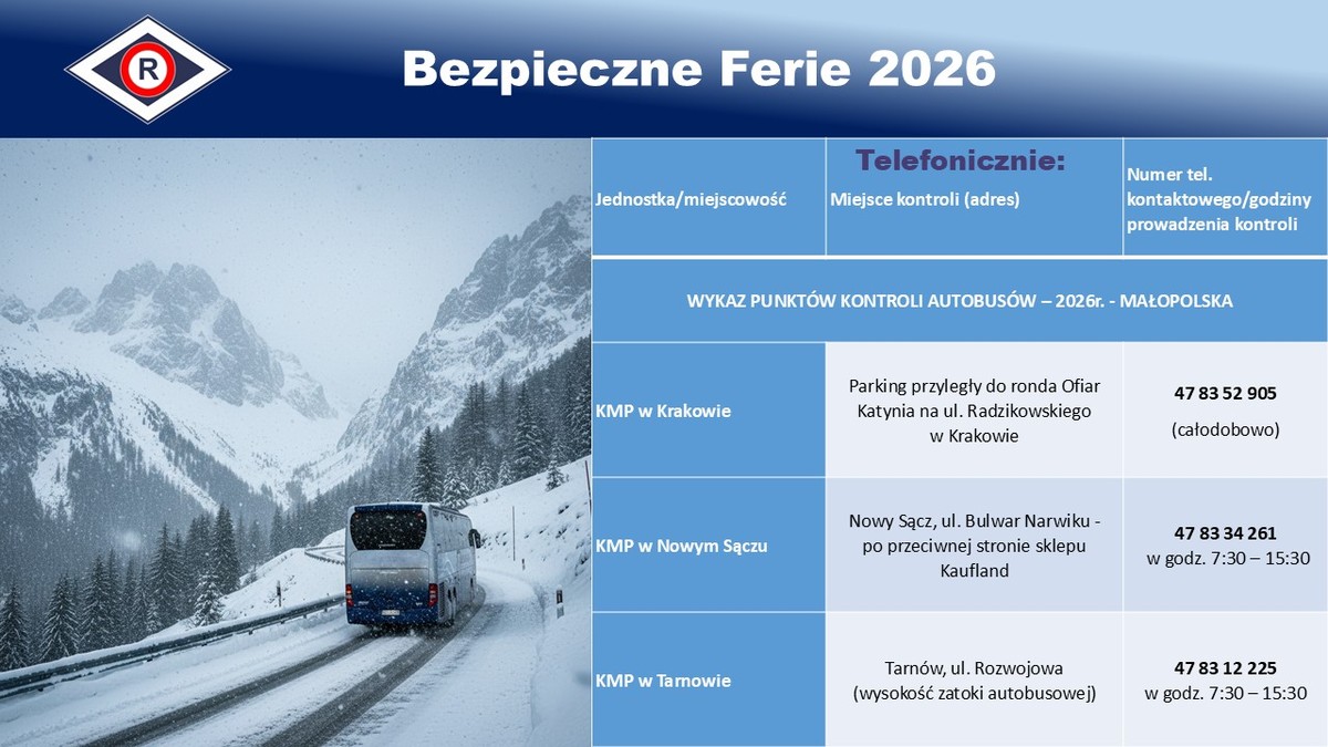 Wykaz Punktów Kontroli Autobusów na Ferie 2026 w Małopolsce.