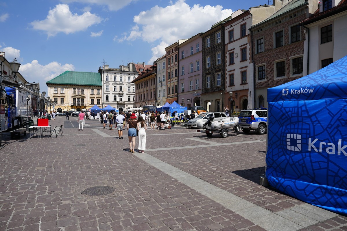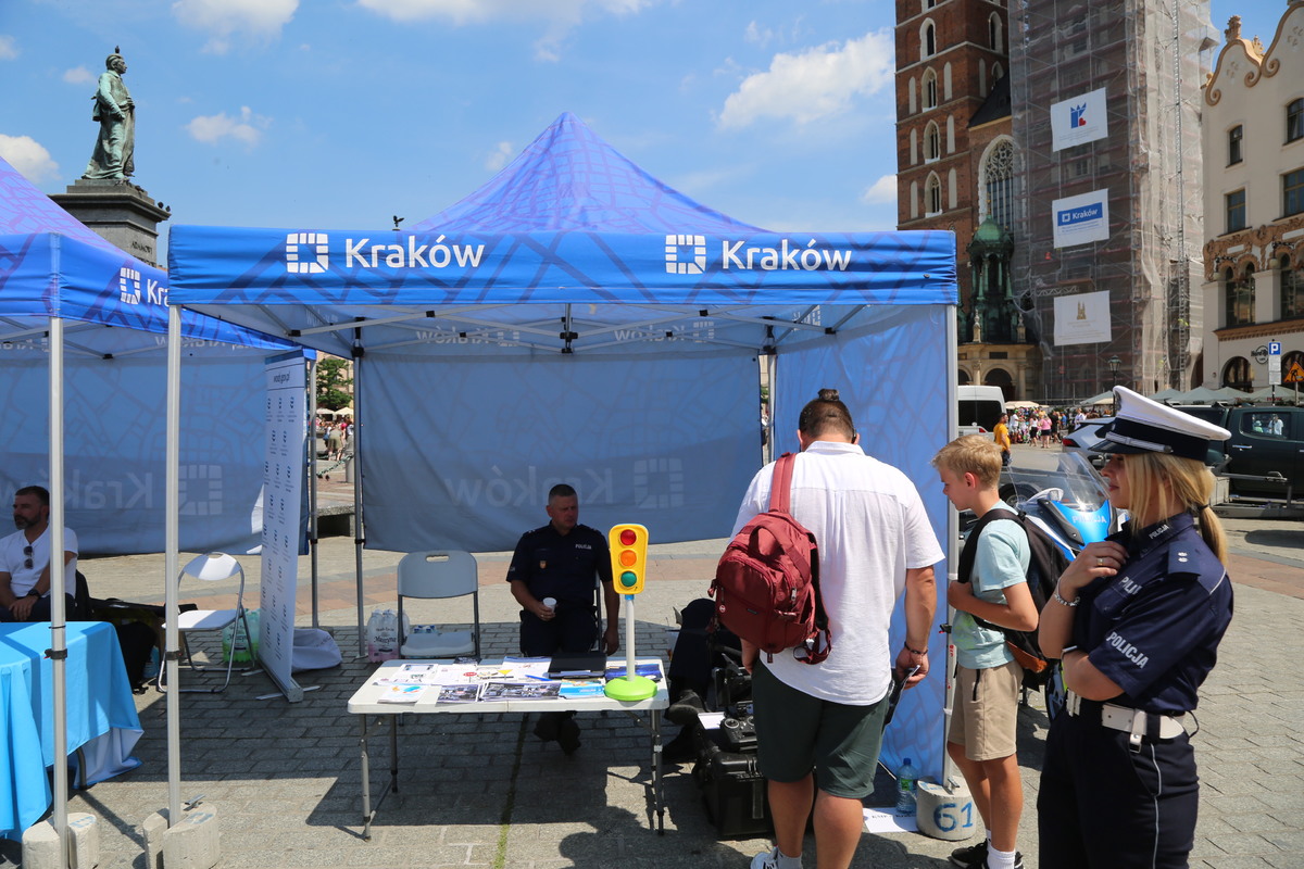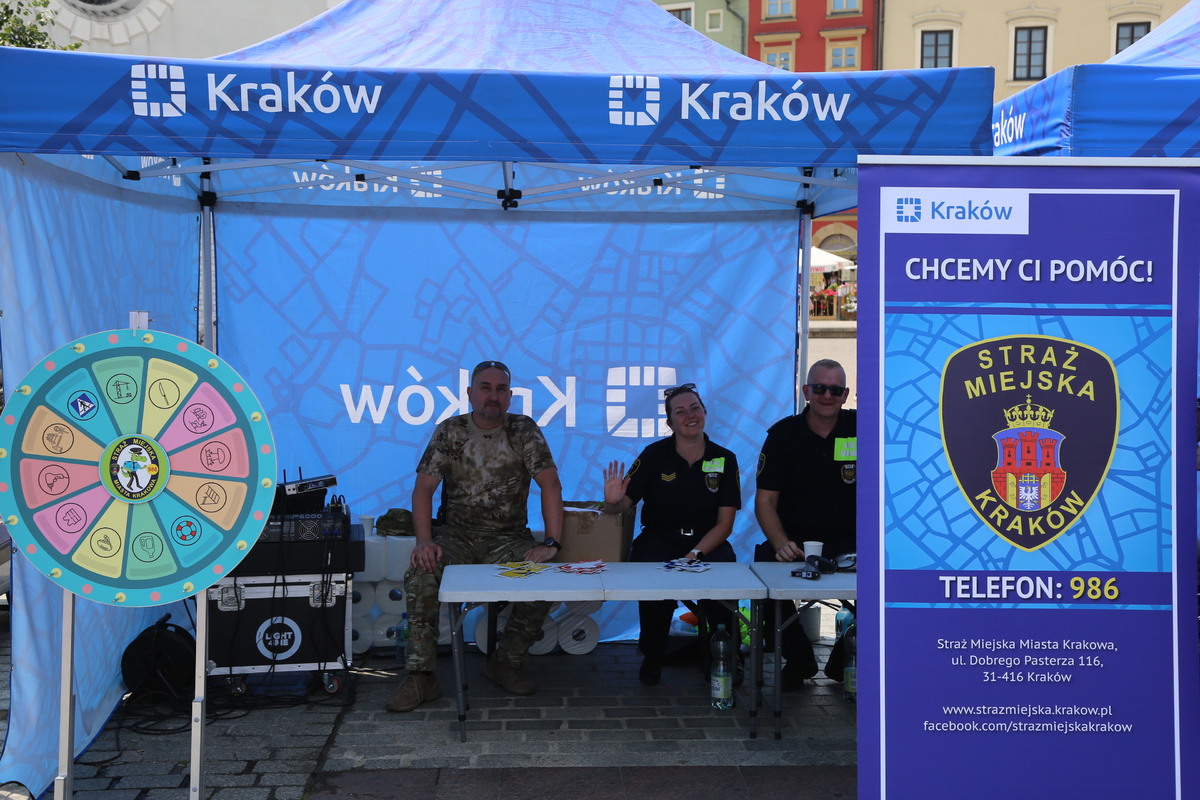 Na Rynku Głównym oraz Małym Rynku uwagę przyciągała strefa mundurowa zachęcająca do bliższego poznania pracy różnych formacji odpowiedzialnych za bezpieczeństwo i porządek publiczny. Przedstawiciele służb – Straży Pożarnej, Straży Granicznej, GOPR-u, Straży Miejskiej, Pogotowia Ratunkowego i Policji zaprezentowali specyfikę ich pracy i sprzęt służbowy, a także pokazy ratownictwa i pomocy przedmedycznej. Dodatkową atrakcją była możliwość skorzystania z miasteczka ruchu drogowego, udostępnionego we współpracy z Małopolskim Ośrodkiem Ruchu Drogowego. Wspólnie z Moto Parkiem Kraków udostępniono także symulator dachowania umożliwiający zainteresowanym doświadczenie skutków zdarzeń drogowych w kontrolowanych warunkach. Uczestnicy pikniku przenieśli się do fascynującego świata kryminalistyki i policyjnych śledztw oraz spróbowali swoich sił w ujawnianiu odcisków palców poznając podstawowe techniki pracy kryminalistyki. O przygotowaniach do służby w formacjach mundurowych opowiedzieli uczniowie klasy mundurowej XXV Liceum Ogólnokształcącego w Krakowie. Grupa Rekonstrukcji Historycznej Posterunek Policji Państwowej z Oświęcimia zabrała uczestników w podróż do czasów międzywojennych. Odwołując się do faktów i realiów tamtego okresu, rekonstruktorzy przybliżyli specyfikę pracy policjantów sprzed lat, pokazując jak wyglądała służba i codzienne obowiązki funkcjonariuszy.