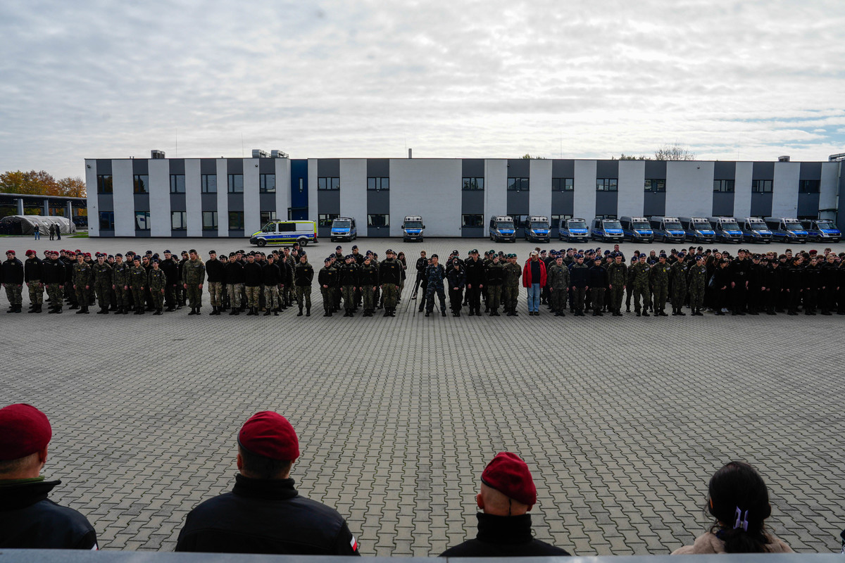 Dzisiejsze spotkanie z udziałem Komendanta Wojewódzkiego Policji w Krakowie insp. Artura Bednarka i jego Zastępców, Wojewody Małopolskiego Krzysztofa Jana Klęczara oraz I Małopolskiego Wicekuratora Oświaty pana Artura Paska rozpoczęło się o godzinie 11, na placu apelowym Oddziału Prewencji Policji w Krakowie