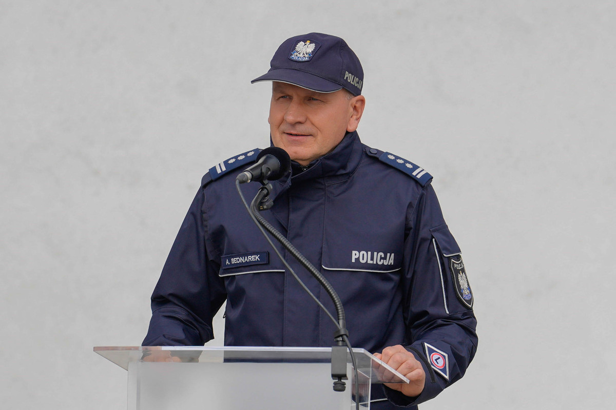 Insp. Artur Bednarek przywitał wszystkich zgromadzonych. Najserdeczniej jednak przywitał uczniów klas mundurowych, którzy pomimo swojego młodego wieku już zdecydowali się na włożenie munduru i wybór klasy ukierunkowanej na służbę. Szef małopolskich policjantów w swoim wystąpieniu kilkukrotnie podkreślił, że „zawód policjanta to służba bardzo odpowiedzialna,