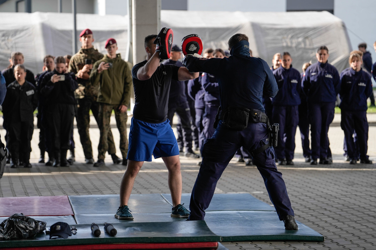 Następnie Wojewoda dodał, że jest przekonany, że wielu młodych ludzi obecnych w dzisiejszym spotkaniu wybierze tę drogę, drogę niełatwą, ale jakże chwalebną, drogę służby Ojczyźnie i drugiemu człowiekowi. Słowa uznania zostały skierowane również do przedstawicieli Sztabu Młodych Mundurowych, który pozwala młodym uczniom klas mundurowych na realne uczestnictwo w działaniach z zakresu bezpieczeństwa i zarządzania kryzysowego.