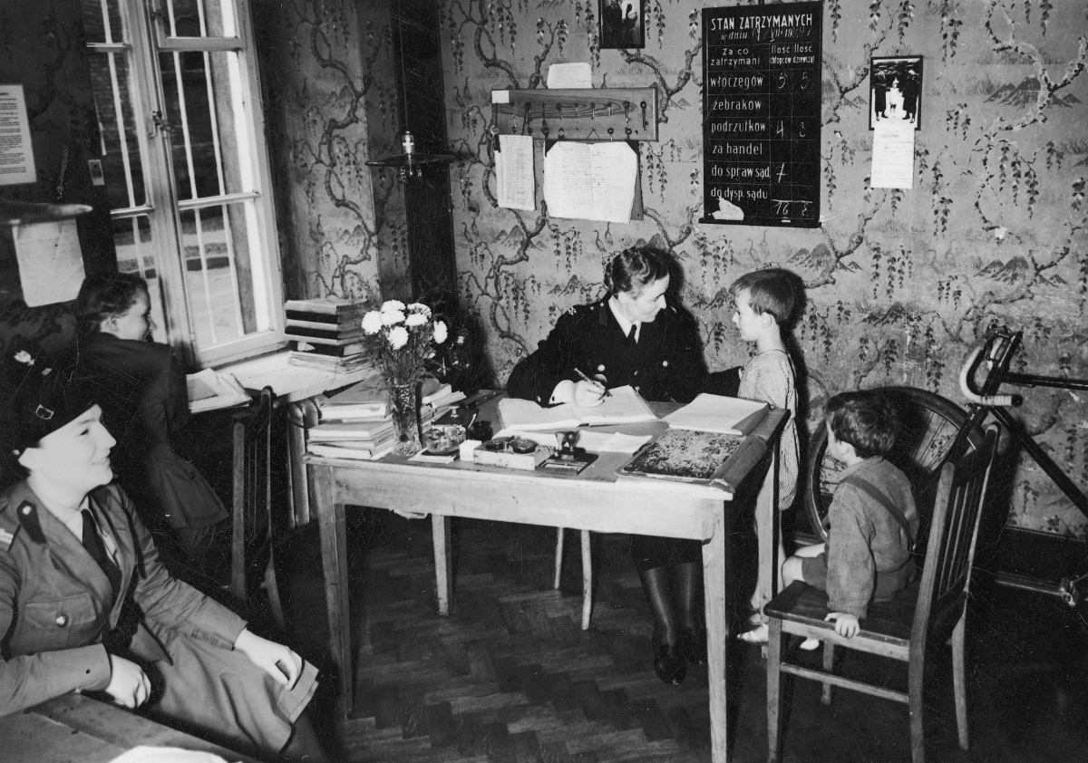 Policjantki podczas służby w izbie zatrzymań, 1939 r., Referat Policji Kobiecej Centrali Służby Śledczej w Warszawie, (Narodowe Archiwum Cyfrowe) -