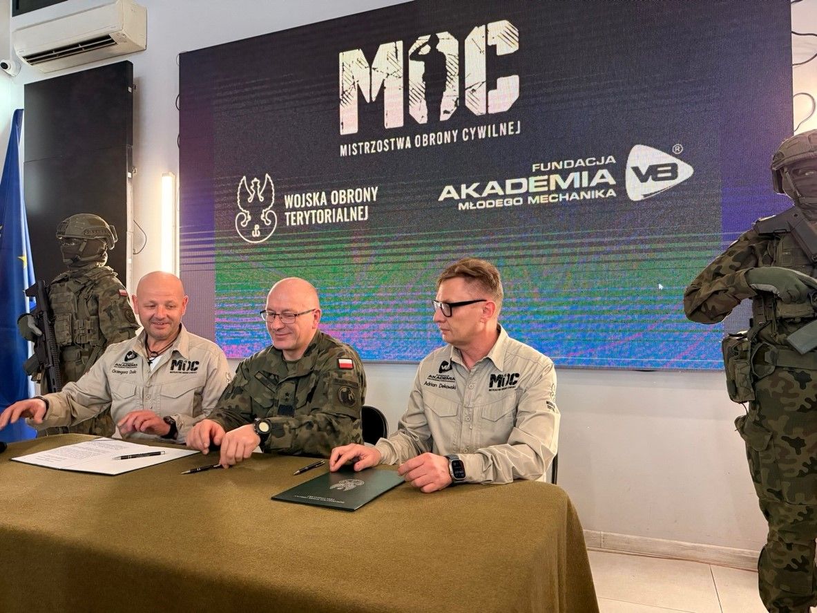 Wczoraj (3.12.br.) w Tarnowie insp. dr Bogumił Jedynak, p.o. Komendant Miejski Policji w Tarnowie, uczestniczył w wyjątkowym wydarzeniu, podczas którego podpisano porozumienie pomiędzy Wojskami Obrony Terytorialnej a Fundacją „Akademia Młodego Mechanika”. To właśnie z tej współpracy ma powstać nowatorski projekt - Mistrzostwa Obrony Cywilnej, łączący pasję, technikę oraz praktyczne działania ukierunkowane na bezpieczeństwo i przyszłość młodego pokolenia.
