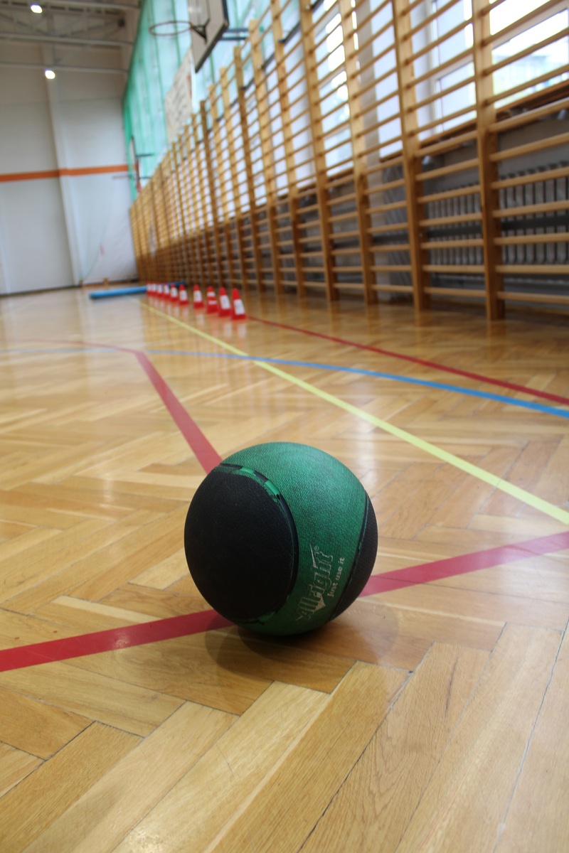 - Rzut piłką lekarską (3 kg) zza głowy – uczestnik wykonuje rzut oburącz do przodu, stojąc przed linią. Próba ta sprawdza przede wszystkim siłę mięśni ramion, barków oraz tułowia.