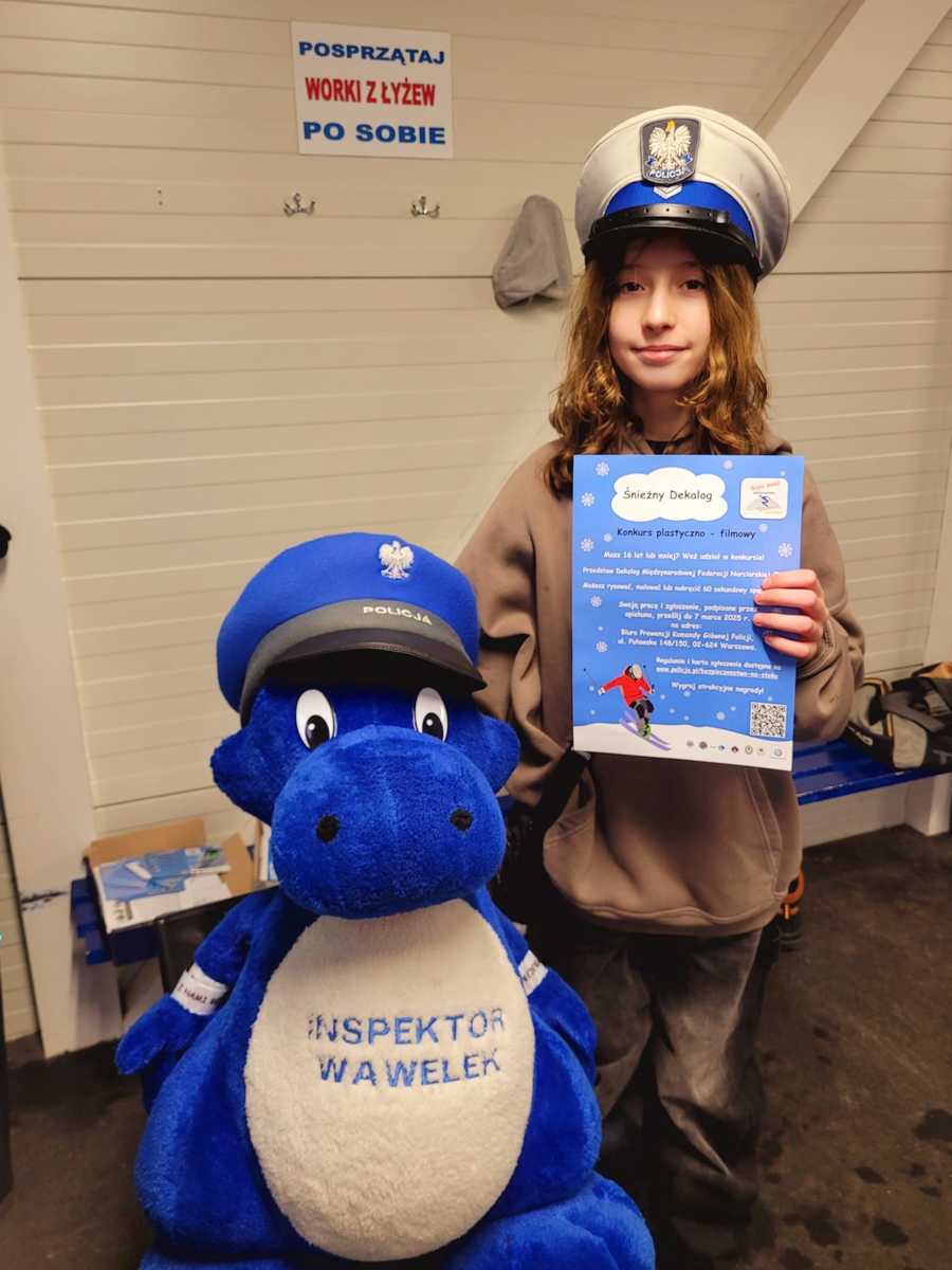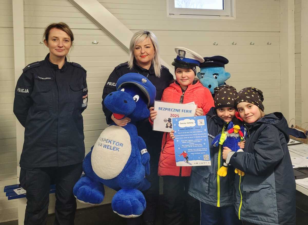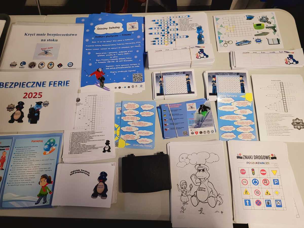 w podróży, bezpieczeństwa poruszania się po drogach i szlakach górskich, zapewnienia bezpieczeństwa pozostawionemu mieniu, a także podczas gier i zabaw rekreacyjnych w terenie. Policyjne stanowisko profilaktyczne cieszyło się dużym zainteresowaniem wśród osób, które spędzały czas na lodowisku. Uczestników zachęcano do udziału w konkursie plastyczno-filmowym, pn. „Śnieżny Dekalog”, który wystartował w ramach ogólnopolskiej akcji „Kręci mnie bezpieczeństwo na stoku”, a propaguje europejski numer alarmowy 112 oraz racjonalne i bezpieczne korzystanie ze stoku zgodnie z międzynarodowym dekalogiem narciarza. Dla dzieci przygotowano materiały profilaktyczne, m.in.: malowanki, plany lekcji, naklejki, tabliczki mnożenia, krzyżówki o tematyce bezpieczeństwa podczas ferii, elementy odblaskowe, ulotki z dekalogiem Międzynarodowej Federacji Narciarskiej (FIS), katalogi atrakcji turystycznych w Małopolsce.