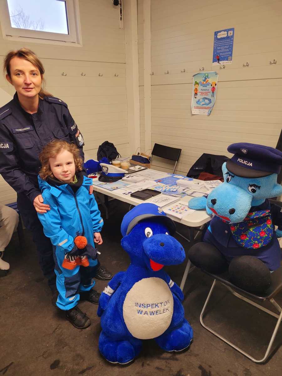 W akcji profilaktycznej funkcjonariuszy wspomagały dwie maskotki małopolskiej Policji przedstawiające smoki: Inspektor Wawelek i Polisia, z którymi wykonywano pamiątkowe zdjęcia.
